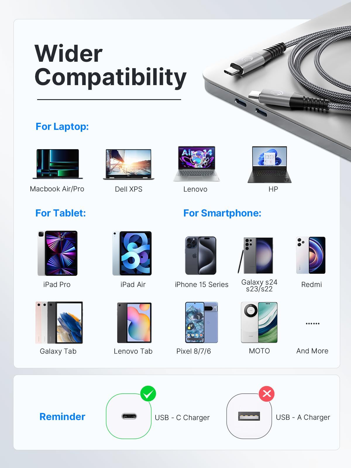 USBC to USBC 100W [10ft/2 Pack] USB C to USB C Fast Charging Cable Braided C to C Charger Cord 5A for MacBook Pro/Air, iPhone 15 Pro Max Plus,iPad Pro,Samsung Galaxy S24 Ultra S23,Pixel,PS5,Switch 【Latest USB C to USB C Cable】USBC to USBC cable, which means it has 2 SAME flat c port charging cable. NOTE: To achive max 100W charging speed, you need an USB type-c port charger that supports 100W of output. Note: ✘✘✘ DO NOT support video output 【2024 Upgraded 100W/5A Fast Charging】Experience the next level of charging! With our lightning-speed 100W usb c to c cable, your iPhone 15 Pro Max reaches a whopping 71% battery in 30 minutes, fast charging MacBook Pro 16" up to 50%, also charge Samsung S23 Ultra to 85% while 60W cable is only 54%, notably knocks off 45mins of your waiting time. And data transfer speeds up to 480Mbps 【MFI Certified Emark Chip】Yosou 100W c to c cable fast charging cord is build in the original power delivery E-Mark chip, which supports USB C PD fast charging. Also has passed 48-hour salt spray test ,ROHS,REACH USB-IF, provides comprehensive protection to devices battery and adapters, keep you in light-speed charging and safe 【Wilder Compatibility】Yosou usb c to usb c fast charging cable for iPhone 15 Pro Max/Galaxy S23 supports PD fast charging. Fully compatible with iPhone 15, 15 Pro, 15 Plus, 15 Pro Max, M1 M2 MacBook Air/Pro 13 14 15 16 inch, iPad Pro 12.9''/11", iPad Mini 6, iPad 10, Samsung Galaxy S24, S23, S23+, S23 Ultra, S22 +, S22, S21, S20, Note 10/20, Z Fold, Z Flip, Tab, Google Pixel 8 Pro, 8, 7 Pro, 7. Xiaomi Redmi, Oneplus, Xbox, Switch, Steam Deck, ThinkPad, Surface, Chromebook, Dell XPS, HP and any Type-C device 【Amazing Durability】Featured by a sandblasted aluminum shell and unibody plug and the body is made of revolutionary fishing net X Nylon braided wire, usbc to usbc cable provides a high-quality texture and enhance heat dissipation capability, Lasts 10x longer than ordinary cables-proven in a laboratory environment to withstand 40000 bends, resulting in a longer lifespan compared to ordinary TPE C to C cables 【What You Get】10ft 2Pack (3m+3m) braided usb-c to usb-c cable, welcome guide, worry-free 18-mon warranty, and 24/7 customer service. Customer's satisfaction is our ultimate priority. Do not hesitate to contact us if you have any problems or in case of concerns 【Latest USB C to USB C Cable】USBC to USBC cable, which means it has 2 SAME flat c port charging cable. NOTE: To achive max 100W charging speed, you need an USB type-c port charger that supports 100W of output. Note: ✘✘✘ DO NOT support video output 【2024 Upgraded 100W/5A Fast Charging】Experience the next level of charging! With our lightning-speed 100W usb c to c cable, your iPhone 15 Pro Max reaches a whopping 71% battery in 30 minutes, fast charging MacBook Pro 16" up to 50%, also charge Samsung S23 Ultra to 85% while 60W cable is only 54%, notably knocks off 45mins of your waiting time. And data transfer speeds up to 480Mbps 【MFI Certified Emark Chip】Yosou 100W c to c cable fast charging cord is build in the original power delivery E-Mark chip, which supports USB C PD fast charging. Also has passed 48-hour salt spray test ,ROHS,REACH USB-IF, provides comprehensive protection to devices battery and adapters, keep you in light-speed charging and safe 【Wilder Compatibility】Yosou usb c to usb c fast charging cable for iPhone 15 Pro Max/Galaxy S23 supports PD fast charging. Fully compatible with iPhone 15, 15 Pro, 15 Plus, 15 Pro Max, M1 M2 MacBook Air/Pro 13 14 15 16 inch, iPad Pro 12.9''/11", iPad Mini 6, iPad 10, Samsung Galaxy S24, S23, S23+, S23 Ultra, S22 +, S22, S21, S20, Note 10/20, Z Fold, Z Flip, Tab, Google Pixel 8 Pro, 8, 7 Pro, 7. Xiaomi Redmi, Oneplus, Xbox, Switch, Steam Deck, ThinkPad, Surface, Chromebook, Dell XPS, HP and any Type-C device 【Amazing Durability】Featured by a sandblasted aluminum shell and unibody plug and the body is made of revolutionary fishing net X Nylon braided wire, usbc to usbc cable provides a high-quality texture and enhance heat dissipation capability, Lasts 10x longer than ordinary cables-proven in a laboratory environment to withstand 40000 bends, resulting in a longer lifespan compared to ordinary TPE C to C cables 【What You Get】10ft 2Pack (3m+3m) braided usb-c to usb-c cable, welcome guide, worry-free 18-mon warranty, and 24/7 customer service. Customer's satisfaction is our ultimate priority. Do not hesitate to contact us if you have any problems or in case of concerns Shipping from the USA All of our products are shipped from the USA, ensuring quick delivery to your destination. Payment We offer the following payment methods: PayPal, credit card, bank transfer, and eBay's secure payment system. Free Shipping & Free Returns Shipping within the USA is FREE. Additionally, any return is absolutely free for you. Risk-Free Purchase You have the option to return an item within 30 days without any justification. We cover the return shipping costs! Fast Shipping We ship immediately upon receipt of payment. Generally, the package is delivered within 2-3 days in the USA. If it takes longer, we will contact you. Quality and Costs Made in Europe, USA, China No customs fees or additional charges Total satisfaction guarantee Invoice with declared VAT available upon request in .pdf format Feedback Your feedback is very important to us. After you pay for your purchase, you will automatically receive positive feedback from us.