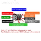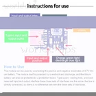 Home Arduino Module Sensor Chips About Us Product Features: 1. Compact size: Dimensions only 16*12*4.4mm. 2. Operates at 4.5-5.5V, compatible with single-cell lithium batteries (parallel connections unrestricted), maximum 1.2A. Provides stable 1A current under specified conditions. 3. Compatible with various 3.7V lithium batteries, including 18650 and polymer cells. 4. Features overcharge and over-discharge protection. Over-discharge cutoff at 2.9V, charge cutoff at 4.2V! 5. Automatically switches to output mode when no external input voltage is present. Supports low-current output at 5V, delivering approximately 450mA. When outputting 1A, voltage fluctuates between 4.9V and 4.5V based on battery capacity. 6. Automatically switches input/output: Charges battery when external voltage is present; discharges otherwise. Charging: Green LED flashes; full charge: steady green. Discharging: No LED on idle; blue LED on under load. Standby power consumption: approx. 0.8mA. Product Specifications: Input/Output: 5V Current: 1A (max 1.2A) Battery Type: 3.7V Lithium Battery Interface: Type-C Port (Input/Output Capable) Charging Current: Max 5V 1.2A Output: Suitable for Low Current Applications Switching: Auto Switching / Permanent Output Indicator Lights: Input/Output Display Dimensions: 4.2V/4.35V Approx.: 16.8*12*4.4mm; 5V: Approx. 16*12*4.4mm Applications: DIY lithium battery charging, small appliance modifications, adding charging ports to tablets, low-power electrical devices Usage Instructions: Connect the module to the positive and negative terminals of a 3.7V lithium battery for operation. The module features built-in overcharge and over-discharge protection; a protection board can also be added to the lithium battery. The Type-C port, solder pads, and rear reserved input/output interfaces are identical sets. Their circuits are directly interconnected, making all three sets functionally equivalent. Wire according to markings (physically connected where colors match). Input can be via Type-C port or direct wiring. Batteries must be connected in parallel, not series. Wires require soldering and should not be too thin to ensure proper operation. Reverse battery connection is prohibited. Function Overview: * When charging current drops to 100mA after reaching final float voltage, the charging cycle automatically terminates. * Maximum charging current: 1.2A. Under proper usage and sufficient power supply, stable charging above 1.1A is achievable. * When battery voltage falls below 2.9V, pre-charging at 200mA commences. * Features a protection board with overvoltage, over-discharge, and overcurrent protection. Over-discharge threshold: 2.9V. * Requires initial power connection to activate the protection board when first using the battery. Precautions: * Do not reverse the battery connection; doing so will burn the board. * Connect the charger before attaching the battery to verify the charging indicator light functions correctly. * Cables must not be too thin, as this may cause insufficient power delivery. All connections must be soldered. * Batteries may be connected in parallel, not in series. Only 3.7V lithium batteries are compatible, with a full charge voltage around 4.2V. * This product is not intended for use as a power bank. Its power output is relatively low, maxing out at 4-5 watts. It also lacks charging protocols. This may cause compatibility issues with certain smartphones. Therefore, when modifying power banks for use with this product, our store assumes no responsibility for any resulting issues with specific mobile devices. FAQ 1. What is this product used for? Answer: Low-power devices, backup power circuits, DIY modifications. 2. Is the input/output switching seamless? Answer: Switching requires approximately 1-2 seconds. Product Listing: 10X Module Payment Shipping Refund Payment Customer satisfaction is our top goal. We believe our items are so outstanding. All products are quality checked. They are new and in good condition when shipped to our customers. We are convinced you will be happy with your Purchase. If product is defective or damage upon arrival, or wrong product shipped, please contact us immediately. Returns accepted within 30 days of delivery date and item must be in original new condition. Please contact us first if you have any problems/questions/concerns. We will be happy to resolve any issues you may have in a cordial and friendly manner. Shipping Please fill in the correct address and zip code and I will ship quickly! Refund If the item is defect when you receive it or you are not satisfied with it, please return it within 30 days for a replacement or money back. But the items must be back in factory condition. Please contact us and double check the return address before you return it.