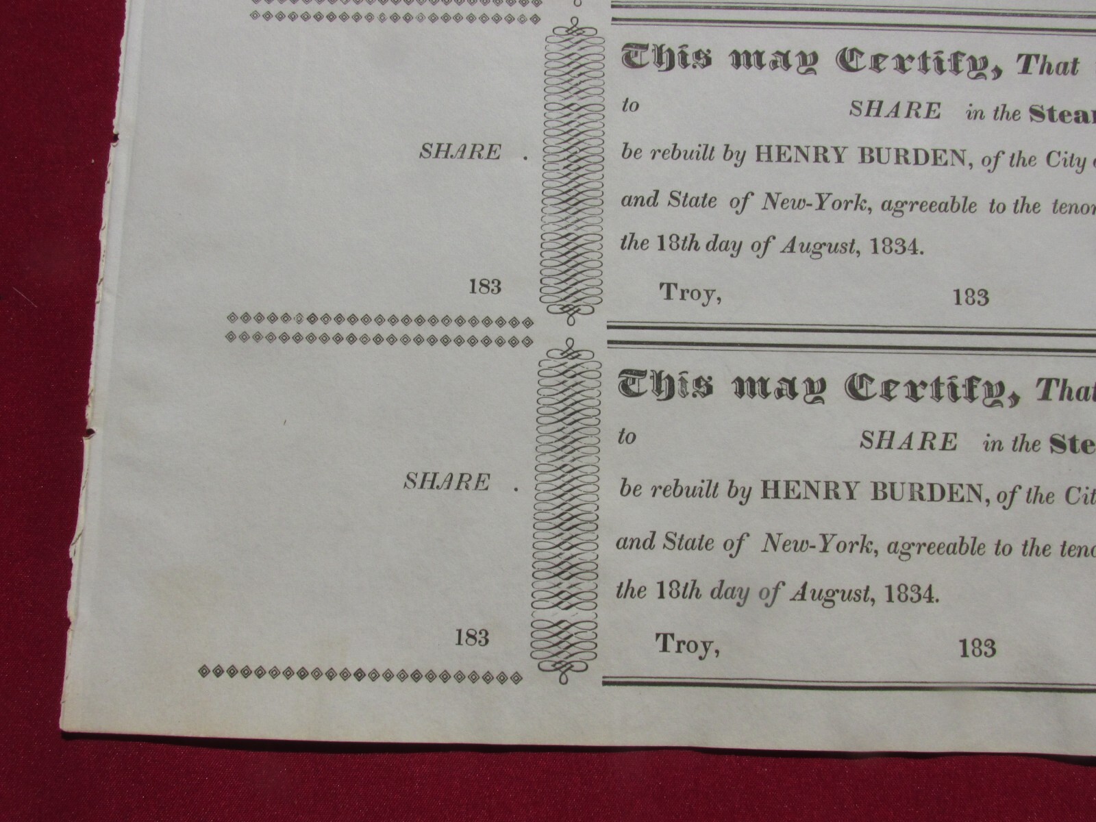 Steam-boat Helen Stock Share Certificate. Troy, New York. Henry Burden item FR .You will receive the same certificate shown in the photo. Shipping combined for multiple purchases . All items are authentic, no reproductions. Thank you FR locator