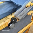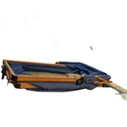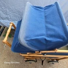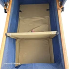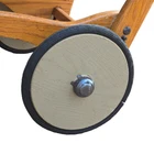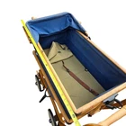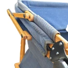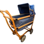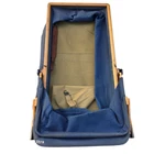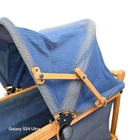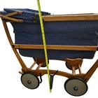 A vintage 1920s Trav-L-EEZ Wooden Pram Baby Carriage with Blue Fabric Canopy and Wheels. Authentic, well-preserved and a throwback to the charm of the 1920s. • 1920s vintage design • Authentic wooden construction • Trav-L-EEZ brand • Blue fabric canopy • Durable wheels Light wear on wheels and frame. Fabric is in overall good condition with some fading & wear (as shown in photos) but no rips or holes. Measures: Approx 30" Tall, 36" Long and 17" Wide