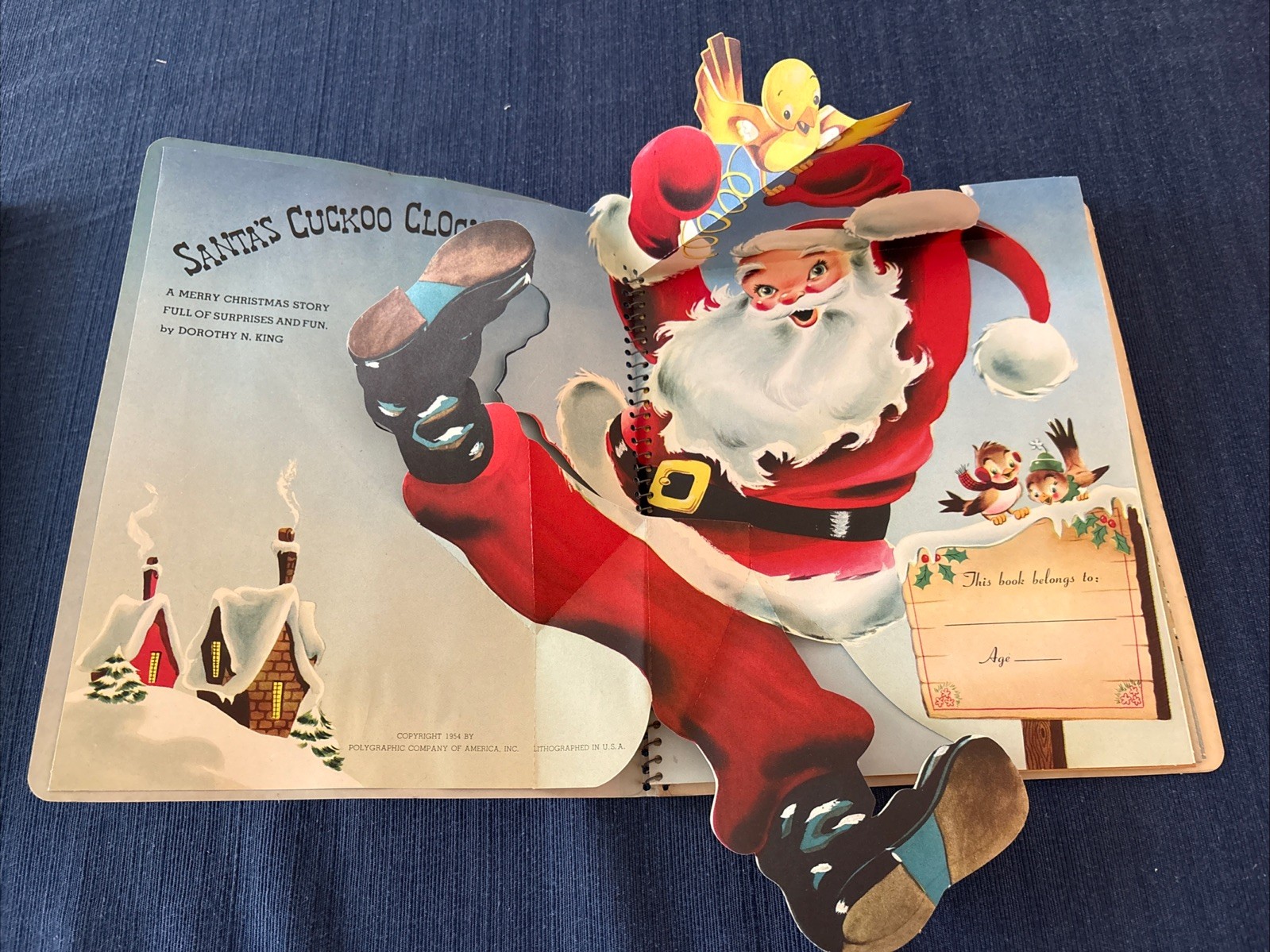 Home1954 Santa's Cuckoo Clock Pop-Up Book 20 Pages with Original Box Rare Vintage Collectible
