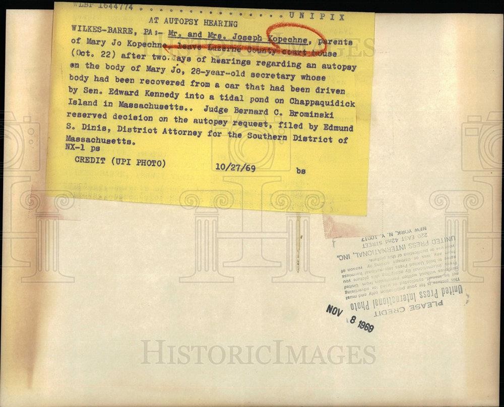 ebay template Note: Please study the images carefully to determine the condition of this vintage photograph, as it may not be in perfect condition. It may contain wrinkles, cracks, and possibly even tears due to its age and how it was handled before it got to us. A scanner may interpret colors and contrast differently than human eyes will, so it is possible that the actual photograph may be slightly darker or lighter in person. This vintage photograph is offered for sale as a collectible item and conveys no transfer of copyright. 1969 Press Photo Joseph Kopechne - dfpb39827 Mrs. Joseph Kopechne Photo measures 10.25 x 8.25 inches. Photo is dated 11/08/1969. PHOTO FRONT PHOTO BACK Historic Images Part Number: dfpb39827 FAQs Q: Can I just download a digital version instead? A: No, we sell only vintage originals and do not make or distribute any copies, including digital ones. Q: Do you combine shipping and invoices? A: Multiple photos won on the same seller ID combine automatically through the eBay checkout process. If you encounter problems with this, send us a message via eBay messaging and we will send you an invoice. Due to eBay limitations, we cannot combine items won on our different seller IDs for a single shipping charge. Q: How quickly do you ship the items once paid? A: We ship within one business day after your payment clears. If you do not receive an "order shipped" email from us by the close of the second business day from submitting payment, please e-mail us via eBay messaging. Q: How do you make sure my photograph arrives safely? A: We package each order between two cross-corrugated pieces of cardboard to ensure that the package is as difficult to bend as possible. We then wrap each order in a plastic sheet to help protect against moisture. We want you to rest assured that we take every precaution to ensure that the photograph you receive will be in the same condition in your care as it was in ours. Q: Will the "Historic Images" watermark be on my photo when I receive it? A: No. This is a digital watermark we use to protect our images. It is not printed on the photo. Q: What are your office hours? A: eBay for us is a business, and a very fun one to be in! We are open M-F 9 to 5 (CST). Therefore, we do not return e-mails and phone calls over the weekend. We observe the following holidays: New Years Day, Memorial Day, Fourth of July, Labor Day, Thanksgiving and the day after Thanksgiving, Christmas Eve and Christmas Day. Q: Where did all these vintage photos come from? A: These original vintage photographs are from various news service and newspaper photo archives from locations around the country including: Boston, Detroit, Tampa, Chicago, Denver, Seattle, New Orleans, Milwaukee, Portland, Spokane, and more. We do not copy or reproduce any photographs -- every item is a unique vintage piece that was housed in a news archive. Q: Can I use this photograph in my book/blog/website? A: The short answer is no. There is no transfer of copyright for republication or reproduction with these photographs when you purchase them, and only photographs taken before 1923 are currently automatically in the public domain. Permission from the copyright holder, which usually can be identified from the back of each photo, must be sought to republish or reproduce the image for any purpose. Q: Do you relist items (in case I miss an auction ending)? A: Auction items that receive no bids are relisted in our store (historicimages-store on eBay) as a fixed-price item and at a higher price than the starting auction price. Q: Do you leave feedback? A: Yes, we always leave feedback for buyers. Our software monitors when our buyers leave us feedback, then notifies us that we can leave feedback for the buyer. Rest assured, if you leave feedback, we will do the same! Check out our family of eBay IDs: historicimages01 Sports Photos historicimages02 Entertainment Photos historicimages03 Americana Photos historicimages04 International & War Photos historicimages05 Transportation Photos historicimages06 Photos of All Subjects historicimages07 Entertainment Photos historicimages08 Newsworthy Photos historicimages09 Entertainment Photos historicimages10 Sports Photos historicimages-store Our largest fixed-price selection historicimages-gallery Hand-picked photos Saturday night auctions About Us Historic Images was formed in September 2009, with a handful of scanners working out of a basement to digitize newspaper photo archives. We have since moved out of the basement, and we can now archive thousands of photos per day. Our company has worked with magazines and newspapers from Detroit, Boston, Denver, Seattle, Tampa, Chicago, and New Orleans, just to name a few. We are constantly adding to our inventory, and have assembled an archive of millions of photos to date. As our company evolved, we began our eBay business, which brings thousands of fresh auctions per week to the world's largest online auction marketplace. Our custom software systems and team of great employees allow us to efficiently scan and sell large photo archives online. At the very core of our company's DNA is a strong commitment to customer satisfaction and strict integrity for our product. Our promise to you is that we will do everything in our power to provide you a great buying experience. Copyright 2009 - Present, Historic Images, Inc. Sell Smarter with Kyozou. Inventory and Ecommerce Management