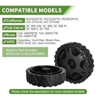 8-Inch Drive Wheels for Self-Propelled Push Mowers and Chipper Shredders Application: Enhance the mobility of your equipment with these 8-inch diameter drive wheels, ideal for 21" self-propelled push mowers and chipper shredders with a 24" vacuum width. Ensure a smoother movement for your machinery. Replace Part Number: Compatible with part number 634-05040. Verify with your original part number before ordering to ensure compatibility. Compatible Models: Craftsman: M210(2019), M215(2019), M230(2019), 247.374410, 247.377440 Cub Cadet: SC 300 HW, SC 300, SC 300 IP, SC 300 E, SC 700 Brute: 12A-A06M078, 12A-A06N778, 12A-A0A9778 Other Brands: Columbia, Yard Man, Black Max, MTD Gold, etc. Please refer to the description for additional compatible models. Easy to Install: Follow these simple steps to replace your mower wheels: Pry off the wheel cover using a flathead screwdriver. Loosen the mounting nut with a 9/16 inch socket and remove the old wheel. Slide the new wheel onto the axle, rethread and tighten the mounting nut. Align and snap the wheel cover back into place. Package Includes: Two Wheel Assemblies with a diameter of 8 inches each.