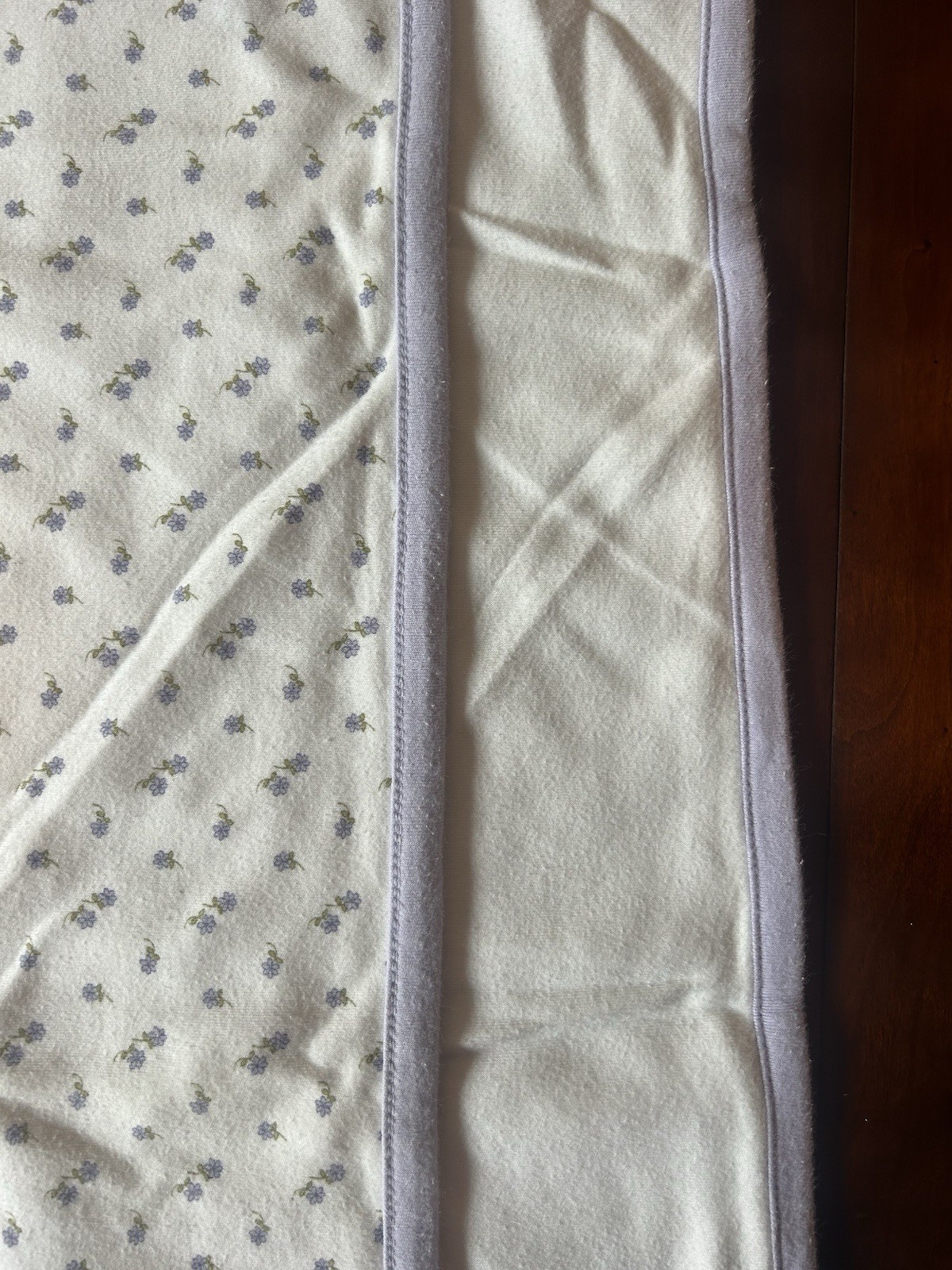 Gymboree purple floral blanket. In GUC. Overall wash wear, see photos. There is one mark (picture I am pointing at spot) that may be a dark green leaf or may be a stain. Photos show condition. Pet friendly, smoke free home.