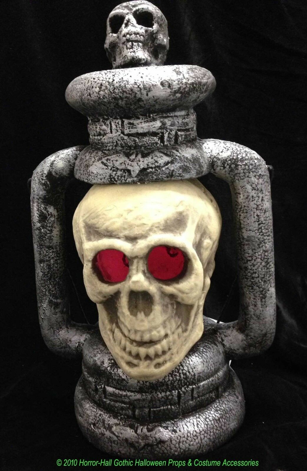 Spooky Multicolor GIANT LIGHT UP SKULL LANTERN Scary Halloween Haunted House Prop Decoration-Creepy Jumbo Extra-Large Human Skeleton Head Size Gothic Pirate Theme Dungeon Cemetery Graveyard Crypt Scene Battery Operated Huge Lighted Lamp Nearly 20-inch Tall Jumbo Skull Light Up Lamp Lantern creates a scary fright night display for any Halloween haunted house graveyard cemetery or realistic pirate theme scene. Double sided to scare from any angle. Frightful Night Light will reveal any spooky demons lurking in the dark! Our Giant Light Up Life Size Human Skull Lantern features a large detailed skull with eerie morphing multi-color LEDs, which light up in the center of this spooky gray and bone color lantern, capped off by a miniature size skull finial on top. Each Jumbo Size Creepy Giant Lighted Human Skeleton Skull Head Lantern measures approx. 19.5 inches (48.75cm) tall x 12 inches (30cm) wide and is made of dense polystyrene foam, plastic and metal. Each Extra Large Light Up Skull Lantern measures over 24-inches tall with metal wire handle extended. Our Giant Morphing Multi-Color Lighted Skull Lamp is a fun and creepy Halloween decoration. Each Lighted Skull Lantern features a large detailed faux human skeleton head skull that lights up in multi colors in the center of this gray and white lantern. Light-up skull lamp can be used on tables or mantels as part of a pirate scene, gothic dungeon or Halloween cemetery graveyard crypt display. Requires 2-AA batteries, NOT included. -Approx. 19.5 inch (48.75cm) tall x 12 inch (30cm) wide x 9-inch (22.5cm) deep -On / Off Switch under Base - Indoor or sheltered covered porch use. -Multicolored lights -Requires 2-AA batteries (Demo batteries included) -Materials: Dense polystyrene foam, plastic and metal Brand: Sunstar Industries MPN: HH-SS-HWNGLSL UPC: 762543829431