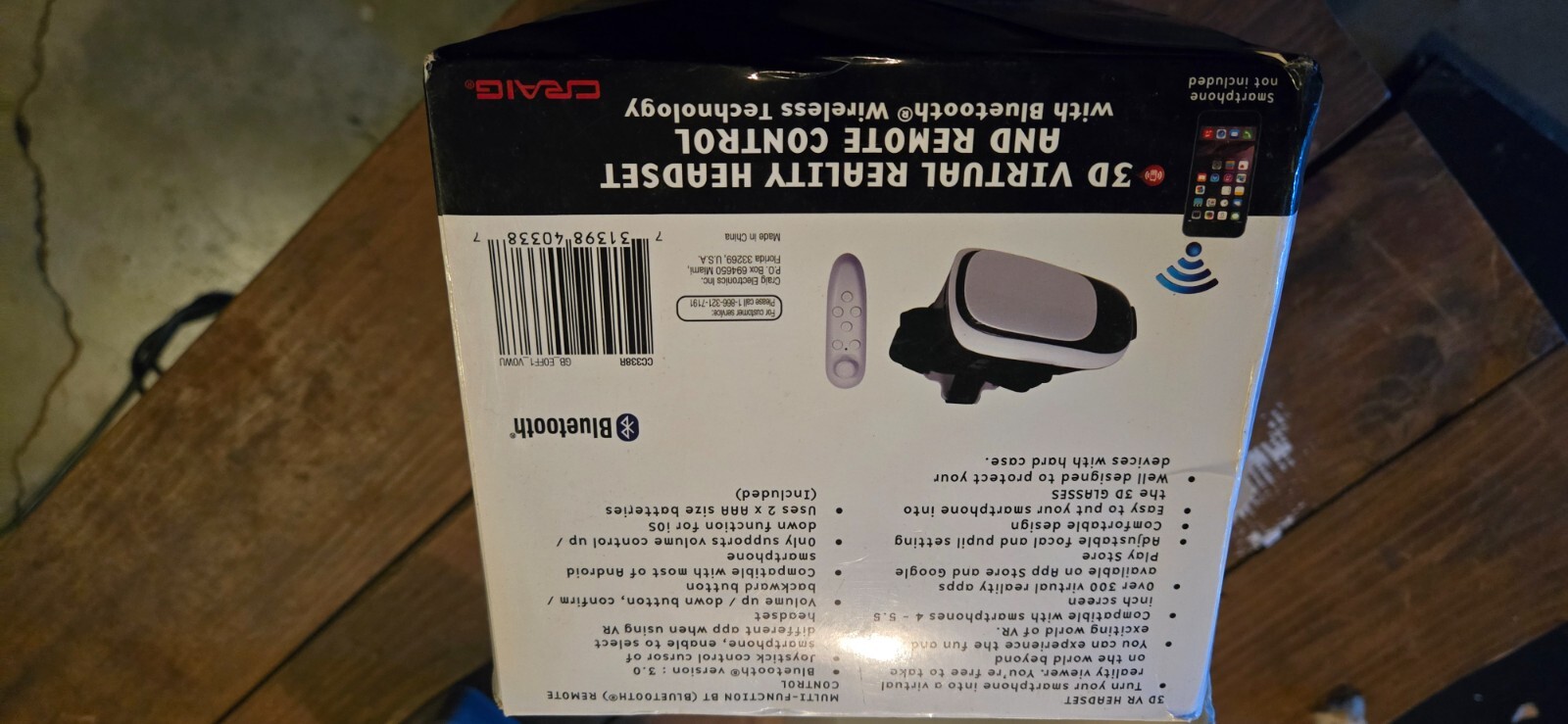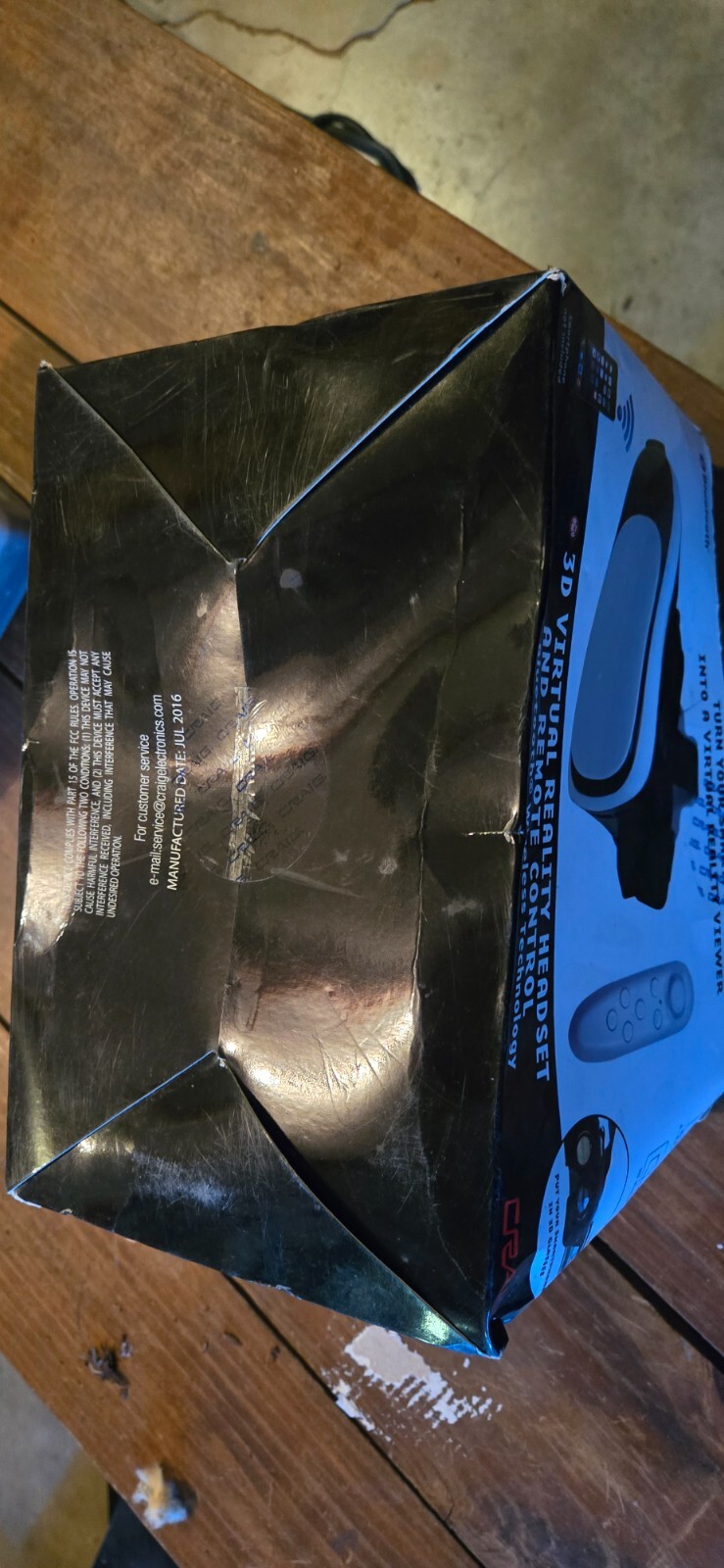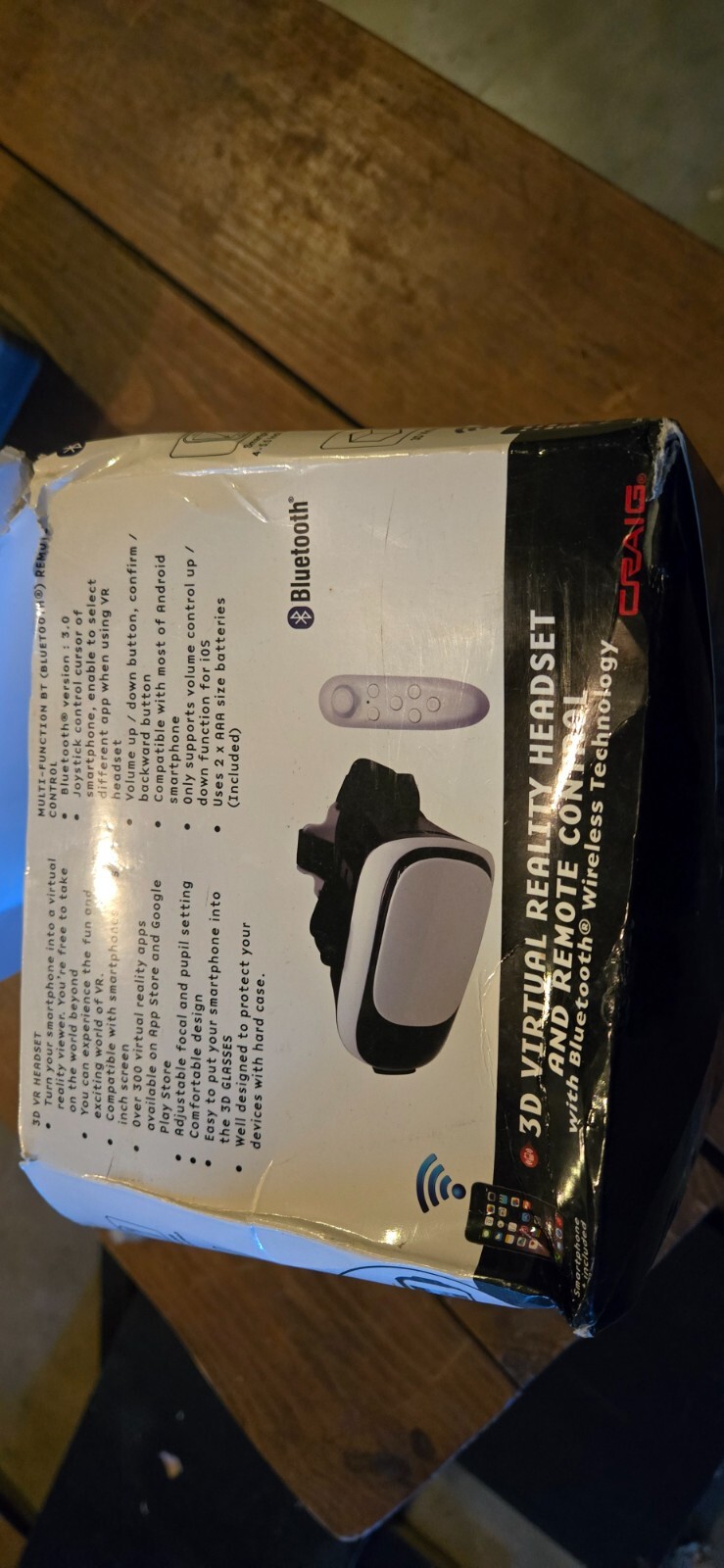 This is a VR headset I got for Christmas years ago. I wasn't much of a vr kid so this is pretty much new. Never used. The box is beat up from being stored away but the product is undamaged. Comes with the remote and even still has the sealed battery pack inside. Examine the photos closely as I've done my best to give as much info as I can. Ask any questions if necessary. Thank you