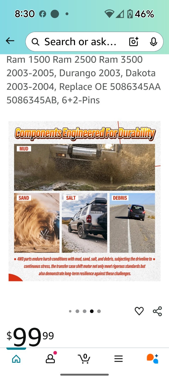 600-936 4WD Transfer Case Motor Compatible with Dodge Vehicles - Ram 1500 Ram 2500 Ram 3500 2003-2005, Durango 2003, Dakota 2003-2004, Replace OE 5086345AA 5086345AB, 6+2-Pins Open box new item