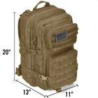 This tactical backpack is designed specifically for outdoor use, using high-strength and durable fabric with excellent waterproof and tear resistance. The backpack design conforms to ergonomics, equipped with thick shoulder straps and breathable backplate, making it comfortable to carry for a long time. Functional features: Large capacity layered design: convenient for classifying and storing equipment. Tactical Expansion System: MOLLE webbing can be equipped with external tools to enhance loading flexibility. Durable hardware: zippers, high-strength fasteners to ensure reliability and durability. Suitable for multiple scenarios: mountaineering, hiking, traveling, and daily tactical needs can all be met.