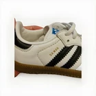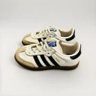 Adidas Samba OG Toddler Shoes Cloud White Black Gum Size 8K IE3679 . In great usable condition, in a box . Minor stain in the front , letter M on right shoe is scratched a little and couple other barely noticeable scratches ( please see pics ). Please let me know if you need more photos . From smoke free home . No returns . Thank you.