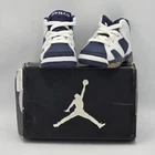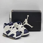 PLEASE CHECK PICS NO 6 OUT.....Air Jordan 6 Retro TD "Olympic 2012" in size 2C is a stylish and comfortable sneaker for baby and toddler wearers. Made of leather with a white color and retro theme, this athletic shoe features the iconic Jordan character and brand. With a history dating back to 2012, this sneaker is perfect for various seasons and activities, including walking and everyday wear. Made in Indonesia, this unisex baby shoe is a must-have for little feet looking to make a statement in style.