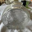 The Anchor Hocking Glass Buffalo Nickel Indian Bank is a collectible still bank made of glass. It features a design inspired by the buffalo nickel and Indian head coin, making it a unique and visually appealing piece for collectors. This bank is a nostalgic and charming item that adds character to any collection of vintage or unique piggy banks. Keep checking back for more collectibles and glassware!