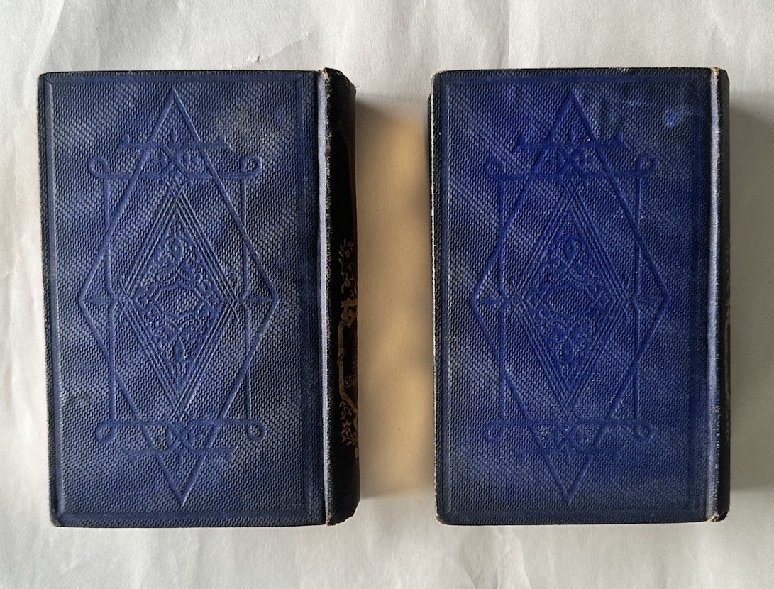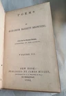 This product is a pair of antique hardcover books, volumes 1 and 3 of Mrs. Brownings Poems, by Elizabeth Barrett Browning. Published in 1864 by James Miller in New York, the books feature gilded edges and are pocket-sized. The literature and fiction topic of these original English-language publications makes them a valuable addition to any collection. This pair of antique pocket sized poetry books are in good condition with some wear to the covers. The binding is still intact and in good shape for its age. There is some foxing to some of the pages but otherwise clear. See all photos for details. Sold as is.