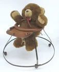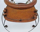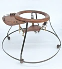 This antique wooden baby walker bouncer with metal legs and rollers is the perfect addition to any nursery or collection. The vintage design and unique features make it a charming piece to display. The brown color adds warmth to any room and the unknown brand and country/region of manufacture only adds to its mystery and allure. Use this antique baby walker bouncer as a decorative item or simply admire its craftsmanship. Whether you're a collector or a new parent looking for a special piece for your baby's room, this antique wooden walker is sure to please. Antique VTG Wooden Baby Walker Bouncer with Metal Legs & Rollers Use as Display Contains : · Wooden Baby Walker Bouncer · Serving Tray and Wood Sliding Balls for Play · Materials: Wood, Metal Legs & Rollers · Use as Room Décor Display · *Note Bear is (NOT INCLUDED), used for photos only · Dimensions: o Height to Top Ring: Overall 14” High o Diameter of Bottom Ring 24.5” o Top Wood Ring: 13” Outside Diameter 9.5” Inside Diameter o Serving Tray: 9” Wide x 4” Deep Condition : Walker in Good Vintage Condition - One spring missing supported by vintage String Please view photos to determine. United States (U.S.) Only No International Sales, No Exceptions Thanks & have a safe week