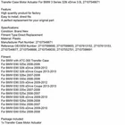 You may also like Transfer Shift Actuator Case Motor 36410-60083 for Lexus GX470 4.7L 2003-2009 H1 210.85 USD Free shipping Transfer Case Shift Motor for Jeep Grand w/NV146 NV245 2005-2010 5143786AA U4 173.85 USD Free shipping Distribution Gearbox Actuator Repair Kit 27102413711 For BMW E90 X3 E83 X5 23.85 USD Free shipping Vacuum Switch Transfer Case Switch for Jeep Grand Cherokee 05083138AA #1 U4 28.85 USD Free shipping Transfer Case Box Motor for Porsche Cayenne 955 03-10 95562460100 0AD341601A #2 213.85 USD Free shipping Transfer Case Shift Actuator Motor 68023514AA for Jeep Liberty 2008-2012 US 232.85 USD Free shipping Transfer Shift Actuator 36410-0K020 for Toyota Tacoma 2016-2020 4Runner 4WD US 189.85 USD Free shipping NEW Transfer Case 33100-3KA0B for Nissan Infiniti QX60 JX35 Murano Pathfinder US 659.85 USD Free shipping Transfer Case Shift Motor 98158125 for Chevy Colorado Canyon 2004-2012 4WD US 152.14 USD 161.85 USD Free shipping 6% off Automatic Powershift Gearbox Seal Cover for Ford Galaxy 6DCT450 MPS6 1684808 US 65.66 USD 69.85 USD Free shipping 6% off Gearbox Gear Selector Repair Kits Pin 621-126061 For BMW MINI R50 UE 17.85 USD Free shipping 4WD Transfer Case Shift Motor for Nissan Frontier Titan Xterra 05-15 5.6L T07 135.22 USD 143.85 USD Free shipping 6% off Programmed TCU TCM Transmission Control Module A2C53377498 for Ford Focus 1.6L 475.85 USD Free shipping Programmed TCU TCM Transmission Control Module A2C53377498 for Ford Focus 2.0L H 419.85 USD Free shipping Manual Gear Shifter Spring Pin for Subaru Impreza WRX STI 1990-2018 633046020 11.95 USD 12.85 USD Free shipping 7% off A/C Heater Air Housing Door Assembly for Dodge Ram 68004226AC 2002-2010 149.85 USD Free shipping NEW-00004 Transfer Case Motor Actuator For BMW 3 Series 328i xDrive 3.0L 27107546671 U4 Transfer Case Motor Actuator For BMW 3 Series 328i xDrive 3.0L 27107546671 Feature: High quantity product for factory Easy to install, direct fits A perfect replacement for your original part Specifications: Condition: Brand New Fitment Type:Direct Replacement Material: Plastic Manufacturer Part Number: 27107546671 Reference OE/OEM Number: 27107599690, 27107599693, 27107613152, 27107613153, 27107546677, 27107548666, 27107549030, 27107552701, 27107599691 Fitment: For BMW with ATC-300 Transfer Case For BMW E90 325xi 2006-2006 For BMW E90 328i xDrive 2009-2012 For BMW E92 328i xDrive Coupe 2013-2013 For BMW E90 328xi 2007-2008 For BMW E90 330xi 2006-2006 For BMW E90 335i xDrive 2009-2012 For BMW E92 335i xDrive Coupe 2013-2013 For BMW E90 335xi 2007-2008 For BMW E60 525xi 2006-2007 For BMW E60 528i xDrive 2009-2010 For BMW E60 528xi 2008-2008 For BMW E60 530xi 2006-2007 For BMW E60 535i xDrive 2009-2010 For BMW E60 535xi 2008-2008 Package included: 1x Transfer Case Motor Actuator NOTE: To ensure you have 100% satisfied shopping experience, please check the Specification and Description and Pictures all carefully to make sure the product are the same with what you want before purchasing. Thanks for your cooperation! About Us Shipping Terms Of Sale Contact Us Areyourshop has committed to do our utmost to serve more vehicles models with the most competitive products both in price and service, including headlights, foglights, taillights,headlight assembly, etc., aiming at the largest group of customers. Paired with our fast shipping and satisfaction guarantee, we’re able to ensure that all the customers can get the product when they need it. Customer Satisfactory 1.We back our commitment with superb service, 100% full money back and a customer satisfaction guarantee. 2.I am here and ready to assist you with any questions or concerns you might have before or after the purchase. 3.My goal is to make sure you are a happy customer and pleasant shopping with us. Feedback If you are satisfied with the purchase and our total service, your comment is very important in our business success. Please take a minute to leave us a positive feedback with an overall Detailed Selling Rating (DSR) of 5. Our eBay account setup auto feedback, so eBay system gives you automatically Positive feedback back after your positive feedback left. If you plan to give us a neutral/negative feedback Or open ebay/paypal case, please write to us immediately so that we can do our best to resolve your problem. Shipping Time 1. Usually, Parcel will be delivered 7-10 working day . Please note that we do not handle any orders in weekend nor holidays, all orders come during weekends or holidays will be processed in next working day. 2. The estimated arrival times are specified directly from information provided by our couriers. 3. Please understand that once the order is accepted by courier, it's out of our control. Shipping could be delayed by various reasons such like the weather, strike, or anything unexpected, we don't take responsibility for delay due to "severe weather". 4. If you don't receive the parcel after 10 business days , you can feel free to contact us first, we will help you check it and arrange resend or refund for you. We stand behind everything that we sell and will do everything possible to assure you are satisfied. When you receive your purchase if you are not 100% satisfied, please sent me ebay message and we will do our best to make you happy. If you still want to return your purchase, simply ship the item(s) back to us and we will refund your original purchase price and the original shipping charge. Buyers are responsible for the postal cost of returning the items. We must be notified of the intent to return your item within 30 days of receiving the item. Items returned must be in the same condition that they were received. How to return 1,Please ask us for return address . 2,Shipping back the package . The RMA#(Return Merchant Authorization Number = Your ebay ID) must be clearly written on the return package ,Otherwise the package will be refused. 3,Sent us the return tracking number. 4,All returns will be inspected prior to a cred