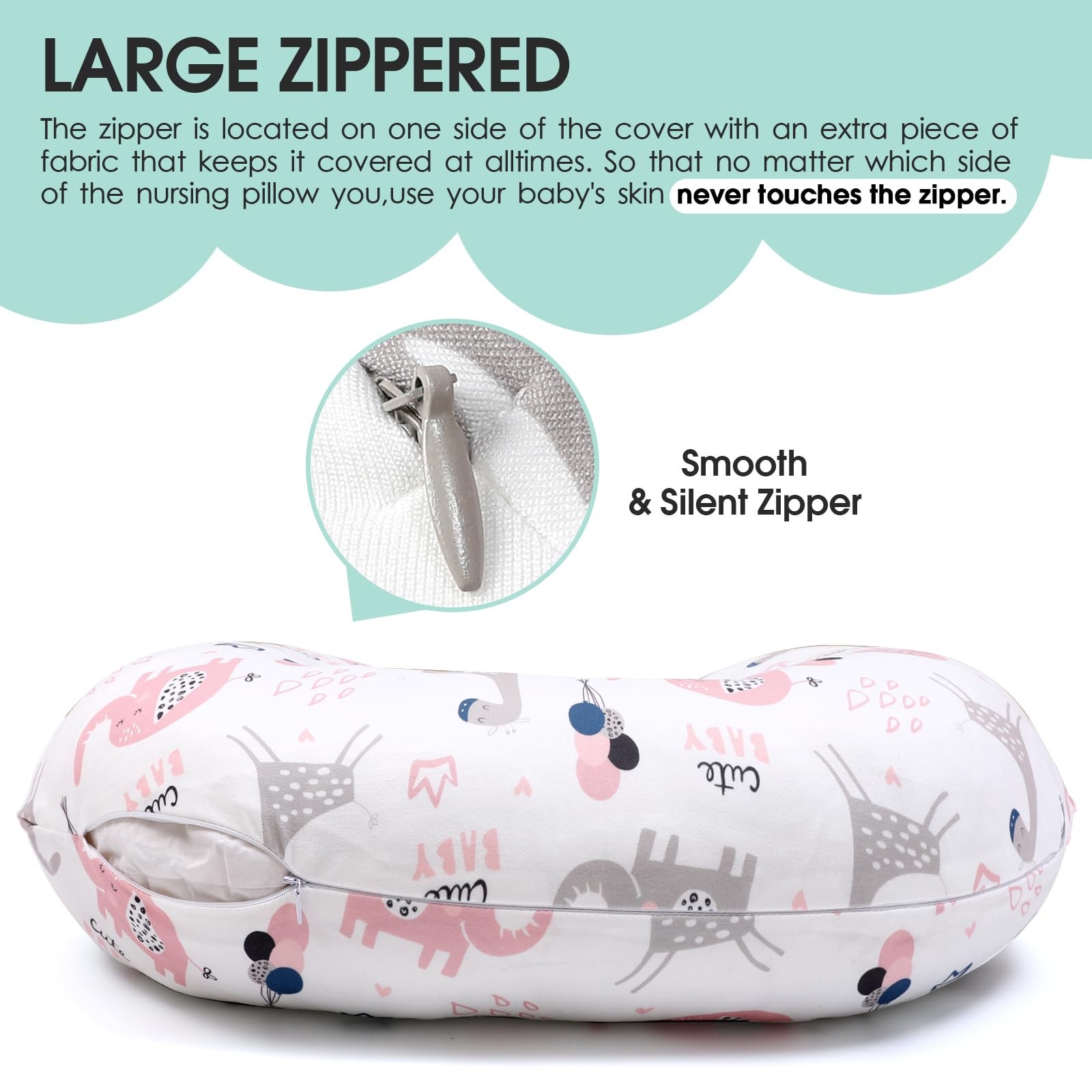 Soft Baby Nursing Pillow Cover: 2 Pack Slipcovers Elevate your baby's comfort during feeding times with our Soft Baby Nursing Pillow Covers. Crafted for both breastfeeding and bottle feeding moms, these slipcovers offer a soft and supportive embrace for your newborn. Soft and Safe Fabric: Our covers are made from a premium, soft fabric that's gentle on your baby's skin. The breathable material ensures comfort throughout feeding sessions. Concealed Zipper for Easy Use: The hidden zipper on our covers is designed for safety and ease of use. It allows for simple application and removal, and keeps your baby's skin safe from contact. Practical for Cleaning: The zippered design makes our nursing pillow covers easy to clean. They can be quickly removed and washed, maintaining hygiene between uses. Universal Fit for Infant Positioners: Designed to fit standard infant positioners, our covers are versatile and suitable for both boys and girls, offering a gender-neutral option. 2 Pack for Versatility: Each pack includes two slipcovers, allowing you to alternate between them for always having a clean cover ready. This is ideal for maintaining a high level of cleanliness. Durable Construction: Made from durable materials, our nursing pillow covers are built to withstand regular use and washing, ensuring they remain comfortable and fresh. A Comfortable Bonding Tool: More than just a cover, our nursing pillow covers are designed to facilitate a comfortable and nurturing feeding experience, supporting the bond between mother and child. In essence, our Soft Baby Nursing Pillow Covers are a smart choice for parents looking for comfort, convenience, and quality in a nursing pillow cover. SOFT & COMFORTABLE BOPPY PILLOW COVERS FOR BABIES & MOMS:These Boppy pillow covers are made from premium fabric, perfect for newborns, infants. Designed for breastfeeding and nursing, they provide a soft and comfortable surface for both baby and mom, making them ideal for nurseries, daycares, or home use. PERFECT FIT FOR ORIGINAL BOPPY PILLOWS:Our Boppy nursing pillow covers are specifically designed to fit original Boppy breastfeeding pillows. The stretchy fabric and elastic edges ensure a snug, secure fit that won’t slip or bunch during use, whether you’re nursing, feeding, or supporting your baby during tummy time. EASY TO CLEAN & DURABLE FOR BUSY PARENTS:Machine washable and quick-drying, these Boppy covers are designed for convenience. Perfect for moms and parents, they maintain their softness and vibrant colors even after multiple washes, making them a practical choice for everyday use in nurseries or daycares. VERSATILE USE FOR BREASTFEEDING, NURSING & TUMMY TIME:These nursing pillow covers are not only great for breastfeeding and nursing but also perfect for tummy time and other activities. The soft, breathable fabric ensures your baby stays comfortable, whether they’re feeding, playing, or resting. STYLISH DESIGNS FOR NURSERIES & DAYCARES:Available in a variety of colors and patterns, these Boppy pillow covers add a touch of charm to any nursery or daycare setting. Whether it’s for a boy or girl, these covers are both functional and stylish, making them a great addition to your baby essentials.