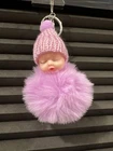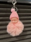 This keychain is a lovely way to honor a new mother or an expectant mother. It is a cute accessory that can be fastened to a baby bag, a mother's hospital bag, or used as decoration for a diaper bag or diaper cake. The keychain features an enchanting sleeping baby wrapped in a cozy blanket (pom pom) and wearing an adorable knitted hat.
