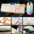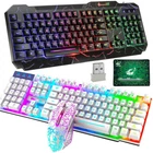 This is a mechanical feel gaming keyboard and mouse, tones clear, feels good, user experience is similar to mechanical keyboard. Quickly control each function, ergonomic design, comfortable to operate. Fit for Vista, Windows 7, ME,2000 Windows XP and Mac OS...or latest,Suitable scope: PC Desktops Laptop computer smart TV Features: 100% Brand new and high quality New LED Lighting Keyboard Mouse Set For Game Player Great for regular office computer using, also perfect for online game playing The keyboard: Colorful LED lighting which controlled by Scroll Lock Suspended keyboard design for comfy playing and easy cleaning The housing made of thicken ABS material, durable and wear-resistant The Wired Mouse: Quick responding speed With 3D anti-slip wheel, convenient to hold it With ergonomic design, comfortable grip and use. Low power and current consumption Specification: #1 #2 Housing Material: ABS Plastic Color: Black/White Interface Port: USB Keyboard Key Numbers: 104 keys Suitable scope: Desktops/Laptop Dimensions Mouse: 7*12.5cm/ 2.8*5inch Keyboard: 43*12.6*3cm/ 17.0*5*1.2inch Compatible with , Vista, Windows 7, ME,2000 Windows XP and Mac OS...or latest,Suitable scope: PC Desktops Laptop computer smart TV #4 Wired Black Keyboard with Muticolor LED Backlit + Knob Key Featutures: [Keyboard backlight switch key] When using this keyboard, the keyboard backlight is not bright. You can press the "Scroll Lock" button and it will light up. (Note: The "Scroll Lock" key is the backlight switch key, which can turn on or off the keyboard backlight. [Retro style-stable and durable] USB backlit colorful mixed light retro typewriter keyboard, sandblasting technology, retro keycap design, laser-engraved characters are not easy to fade. Passed 5 million keystrokes test. Enhanced USB cables and connectors are more durable and data transmission is more stable. [104-key gaming keyboard] 12 function keys are at your fingertips, providing multimedia controls such as music, video, search, etc., to meet the actual needs of professional players. Specially designed buttons, enhanced durability and tactile feedback, provide professional gaming feel and the best tactile typing experience, and are quieter, suitable for office or gaming use. [Wide compatibility] Plug and play, no drivers or software required. Support Windows 98 / Me / 2000 / XP / Vista / Win 7 / Win8 / 10 / Vista and other computer systems. Please note . the mouse showing in the picture is not included. Package Included: 1 x Keyboard #5 Features: 100% Brand new and high quality New LED Lighting Wireless Rechargeable Keyboard Mouse Set For Game Player Great for regular office computer using, also perfect for online game playing Wireless Keyboard: 1.Colorful LED Lighting Which Controlled by "Fn+Scroll Lock" Key 2.Suspended keyboard design for comfy playing and easy cleaning 3.The housing made of thicken ABS material, durable and wear-resistant 4.Splash Proof Design 5.Laser-Engraved Buttons, Stronger Light Transmission 6.Keyboard Key Numbers: 104 Keys Wireless Mouse: 1.Quick Responding Speed 2.With 3D anti-slip wheel, convenient to hold it 3.With Ergonomic Design, comfortable grip and use. 4.Low Power and Current Consumption 5.Colorful Backlight Design Specifications: Color: 1.Black + Rainbow LED Backlit 2.White + Rainbow LED Backlit Connection Method: 2.4G Wireless Connection(Not Bluetooth) Mouse Size: 13.5*7.5*4.0cm/ 5.3*2.9*1.8inch Mouse Battery Capacity: 800mAh Keyboard Size: 44.5*13.2*3.5cm/ 17.5*5.2*1.4inch Keyboard Battery Capacity: 1000mAh USB Charging Cable Length: 80cm Housing Material: ABS Plastic 2 in 1 Wireless Connection: The Keyboard and Mouse adopt 2.4G Wireless Connection, and the keyboard and mouse share a USB receiver, which make it more convenient for you to use the keyboard and mouse Suitable Scope: Desktops/Laptop Compatible With , Vista, Windows 7, ME,2000 Windows XP and iMac OS 10.2 or latest,Suitable scope: PC Desktops/Laptop Computer Notice: 1.The Keyboard and the Mouse share one USB receiver, which place in the bottom of the mouse, insert the receiver into the computer USB port, they will auto connect. 2.Please make sure you turn on the keyboard and mouse before using, and they are not away from the receiver over 10 meters. 3.For better using, please make sure the keyboard and mouse is full charged in their first use. 4.The keyboard will auto enter sleep mode if no operation in 3 minutes, and press any key can wake it up. 5.The keyboard and mouse can be charged by using DC 5V adapter, but cannot support quick charger adapter. Packing List: 1 x Wireless Gaming Keyboard 1 x Wireless Gaming Mouse 1 x USB Charging Cable 1 x Mouse Pad 1 x User Manual #6 Gaming Keyboard Specifications: 3 Adjustable Backlight Colors - The gaming keyboard illuminates in three different colours( Blue, Purple, Red), which are adjustable to your own liking. Avoid wrong keystroke. 19 Key Anti-ghosting - 19 keys are calibrated to prevent anti-ghosting. Press and hold multiple keys simultaneously without fear of missing or unexpected key presses. 10 Programmable Keys at Your Command You can use it to play music, adjust the volume or make it silent, the others shortcut keys can be used to launch E-Mail and homepages. 12 Dedicated Media Keys - One-touch media key access makes sure controls for volume, mute, play and the other essentials are easy to handle and right where you want them. Comfortable During Long Gaming Sessions - LED Illuminated Gaming Keyboard is designed ergonomically, which makes it comfortable for hour long gaming sessions. Plug and play and you can us it smoothly, Hardware. Lite version interface and Spill-Resistant design, perfect matchs your workspace. FN+Up/DOWN To Change Brightness Spill-Resistant Design Mouse Features: 1. Anti-skid and durable to use 2. Ergonomic design makes it comfortable to manipulate 3. Unique alternating light effect makes this mouse different from others 4. Design with USB port 5. Compact, lightweight size, easy t