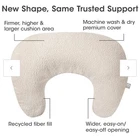 The Boppy New Nursing Pillow with a Luxe Fabric Cover in Oatmeal Boucle is a premium breastfeeding pillow designed by the well-known brand Boppy. The luxurious oatmeal color adds a touch of elegance to the pillow, making it both functional and stylish for nursing mothers. Made with high-quality materials, this pillow provides comfort and support during breastfeeding time, making it a must-have for new mothers looking for a reliable and comfortable nursing solution. Disclaimer: This nursing pillow complies with the CPSC safety standard.