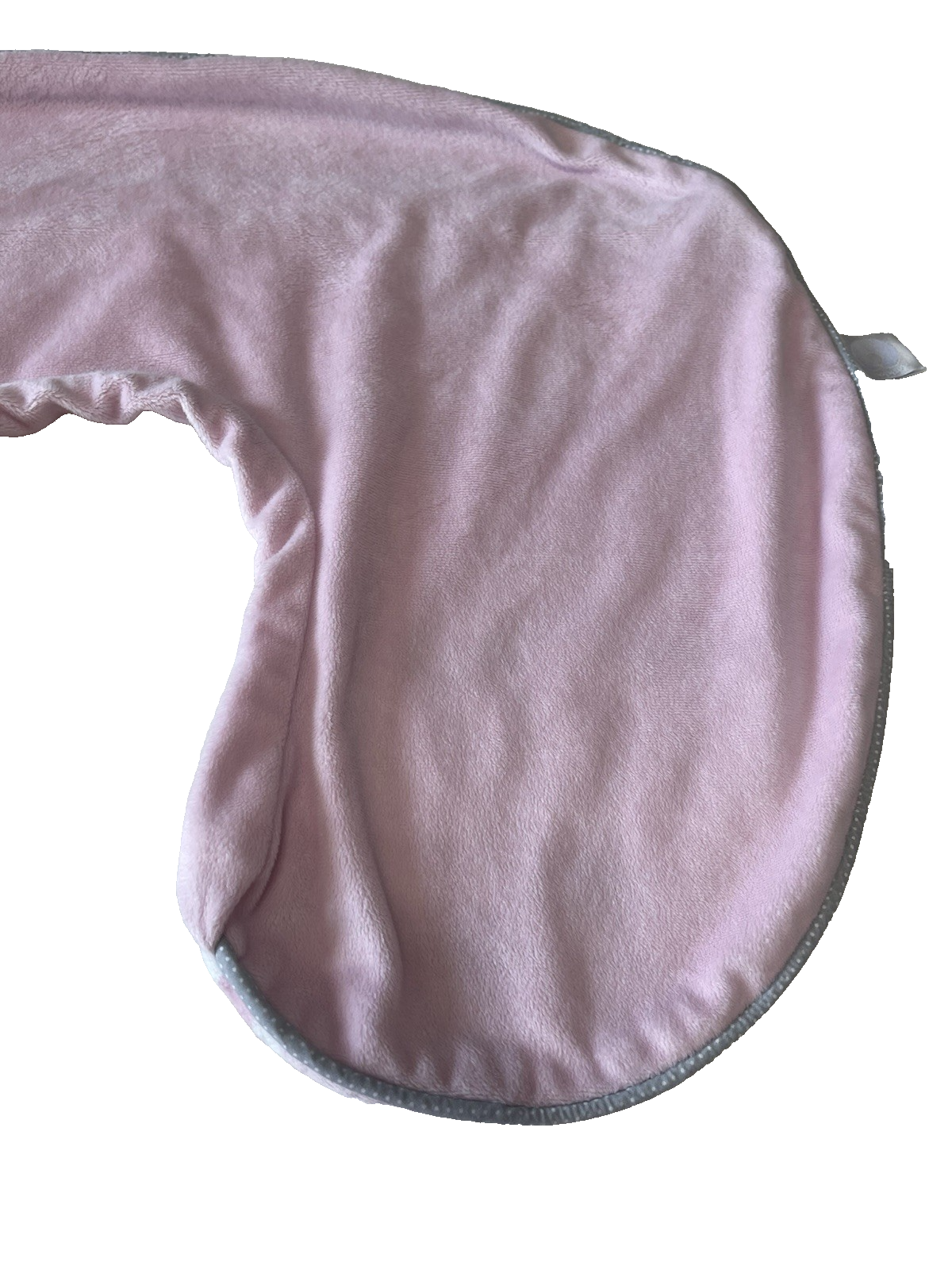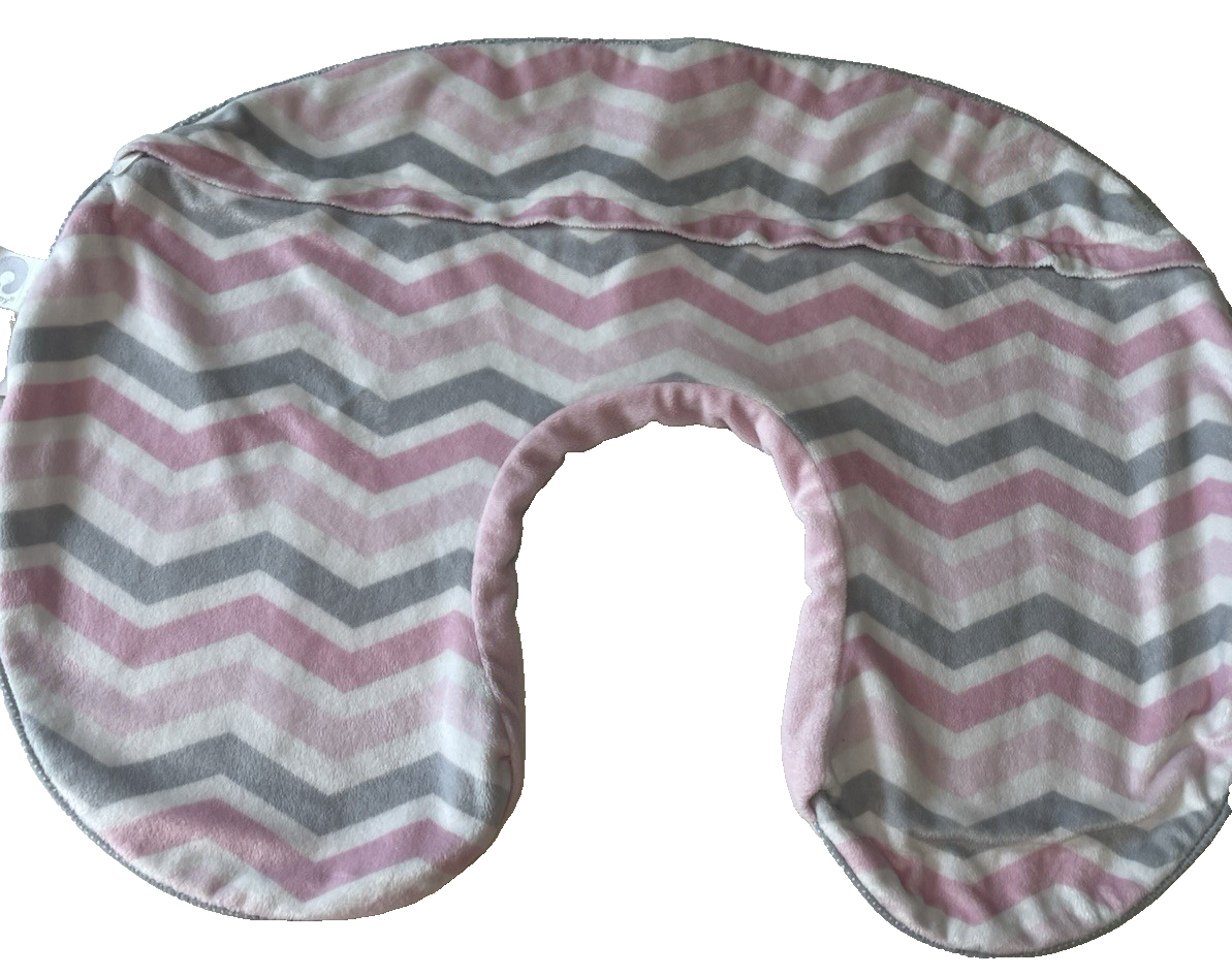 The Boppy Nursing Pillow Cover is a cute and cozy accessory for breastfeeding mothers. Made from plush polyester material in a charming pink and gray chevron pattern, this U-shaped cover provides comfort and support during nursing sessions. Its double-sided design allows for versatility, while its machine washable and tumble dry safe features make it easy to keep clean and fresh. Perfect for both moms and babies, this Boppy pillow cover is a stylish and practical addition to any nursery room. Excellent Condition. No stains or holes. Zipper closure. Polyester Fleece on both sides. Please see the pictures for the full condition of the pillow cover. 100% Polyester Fleece Made in China