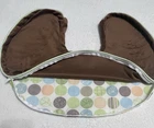 The Boppy Nursing Pillow Cover is a U-shaped pillow cover made from plush polyester material in a reversible design with a polka dot pattern in brown, green, and orange colors. It features a double-sided design, making it easy to switch up the look of your nursing pillow. This machine washable and tumble dry safe cover is easy to clean and maintain, ensuring comfort and support during breastfeeding sessions. Made by Boppy, a trusted brand in baby products, this nursing pillow cover is an essential accessory for any new mom looking for a stylish and practical option for her feeding needs. Excellent Condition. No stains or holes. Zipper closure. Polyester Cotton Blend Dot Fabric on one side, and Brown Plush fabric on the reverse side. Please see the pictures for the full condition of the pillow cover. Polyester cotton blend dot fabric on one side, Brown Plush fleece on reverse side. Made in China