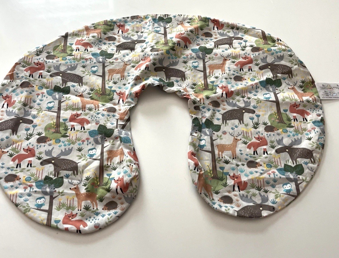 The Boppy Original Nursing Pillow Cover in the Woodland Forest design is a cozy and comfortable option for nursing mothers. Made with a cotton blend material and featuring a U-shape design, this pillow cover provides support and comfort during nursing sessions. The machine washable cover makes it easy to keep clean and fresh, while the polyester filling ensures a soft and supportive cushion for you and your baby. Perfect for on-the-go use or at home, this Boppy pillow cover is a convenient and stylish addition to your nursing routine. Condition: Preowned/Excellent condition