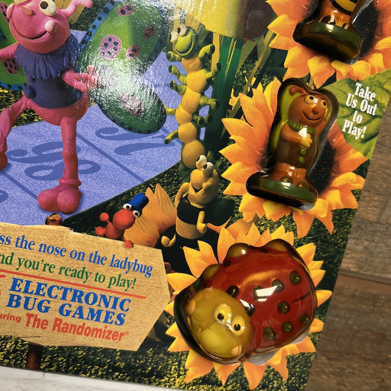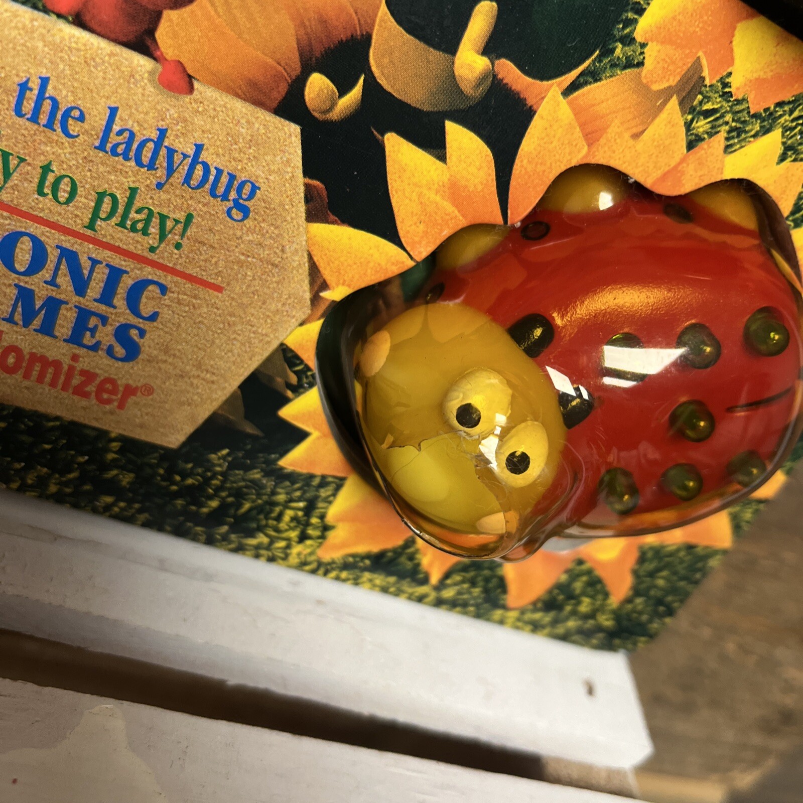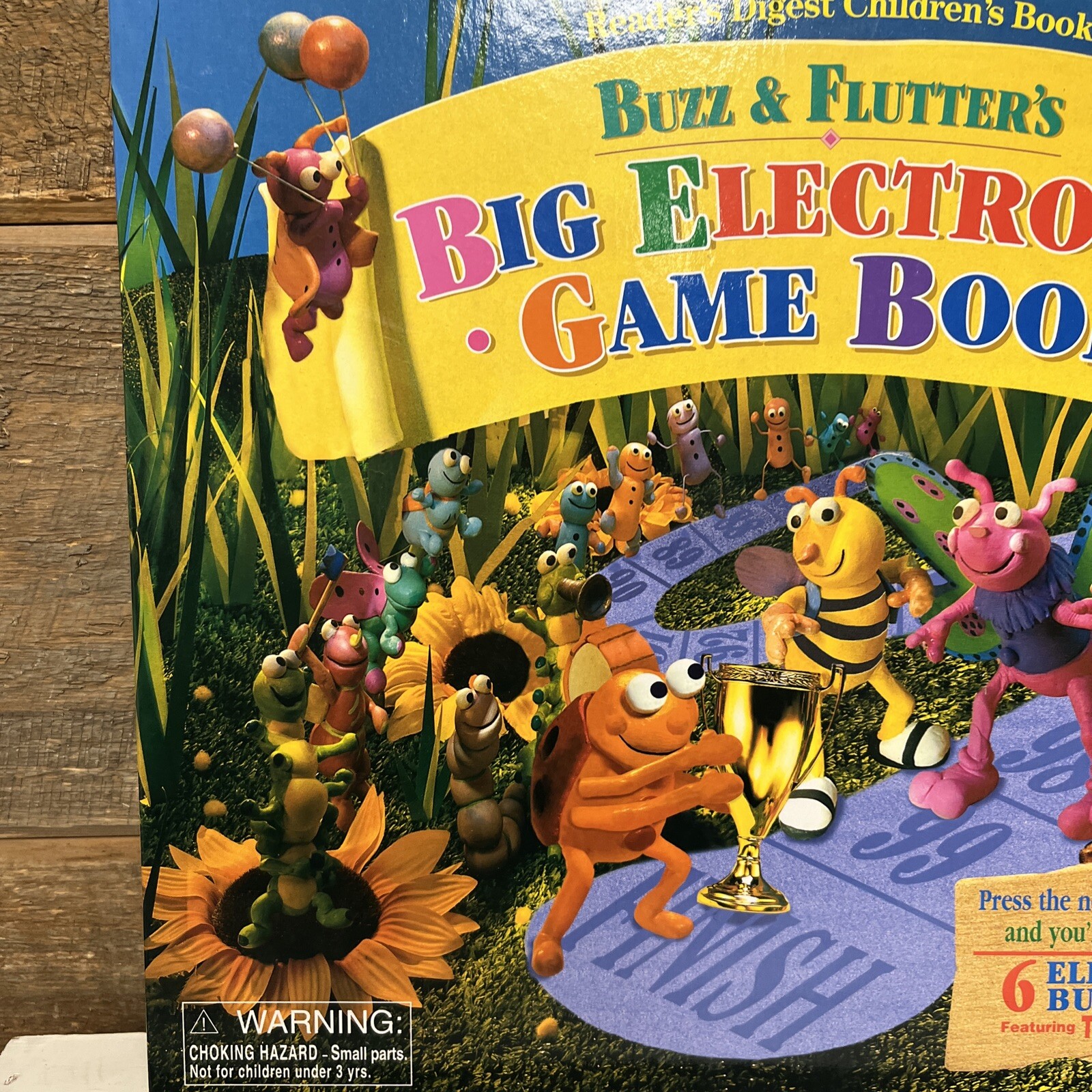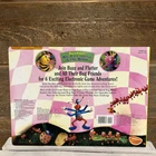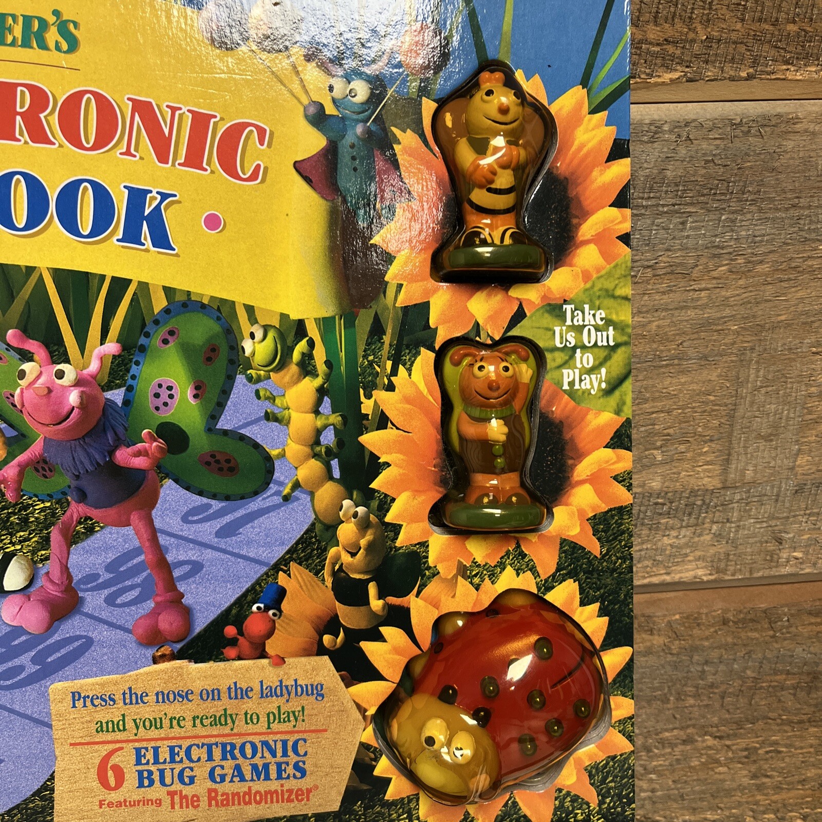 unused. due to storage and age, book has some scuffs/marks/signs of wear. Pieces were never removed, small crack in plastic near ladybug. ladybug piece will need new batteries- makes sound when pressed but sounds like it’s dying and it does not light up. book measurements in photos.