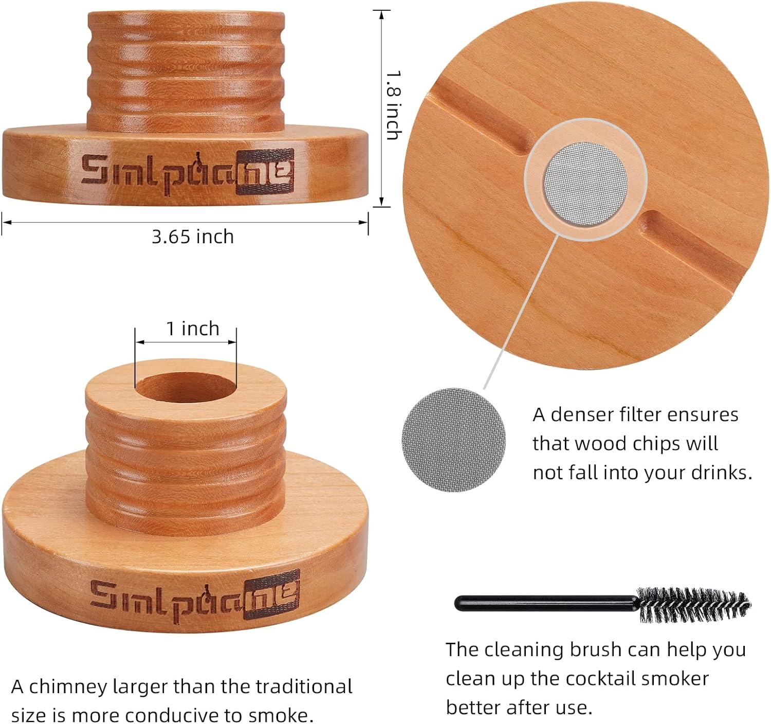 [Easily become a cocktail craftsman] The cocktail smoker is made of natural cherry wood, and the improved design of the enlarged chimney easier to emit smoke, can fill your glass with thick smoke within 10 seconds and give off a strong flavor. even if you are a beginner, as long as you have it, you can easily become a professional bartender. [Cool visual effects ignite your senses] When you light up the cocktail smoker and watch the smoke slowly get involved in your drink, this cool visual effect will surely amaze you and your friends. When the smoke fills the glass, the drink will quickly produce a soft smoky flavor. You can clearly feel the smell of smoked natural wood from the drink to your mouth and then to your body, which will make you enjoy endless aftertastes. [Versatile and easy to carry] The smoker is very suitable for all kinds of food and drink, including bourbon, cocktail, whiskey, cheese, dessert and meats. The cocktail smoker is very convenient to carry. It is not limited to kitchen and bar use. You can take it with you during picnics, fishing, and travel. You can make smoked drinks anytime anywhere. [What you will get] Smlpuame cocktail smoker kit includes a cocktail smoker, a cleaning brush, 10 replaceable filters and 4 different flavors of pure natural wood chips, about 2 ounces of each flavor, including apple, cherry, pecan and oak wood chips. Our wood chips are air-dried to the right humidity, and then crushed into small pieces suitable for full combustion, ensuring that you can enjoy the most original smoky flavor. [The best gift for cocktail lovers] The beautifully packaged cocktail smoker kit is very suitable as a Christmas gift and birthday gift to husbands, fathers and other friends who like cocktails. Product description