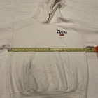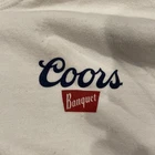 The Coors Banquet Pullover Hoodie in Men's size Large and white color is a stylish and comfortable piece perfect for fans of Coors beer. This hoodie features long sleeves, a pullover style, and is designed specifically for men. The white color adds a classic touch to the hoodie's overall look, making it a versatile addition to any wardrobe for those who appreciate the Coors brand and beer theme. The main photo is of the back of the hoodie. Just the small logo on the front. There are a few small stains (see pictures) itโs still in good condition overall