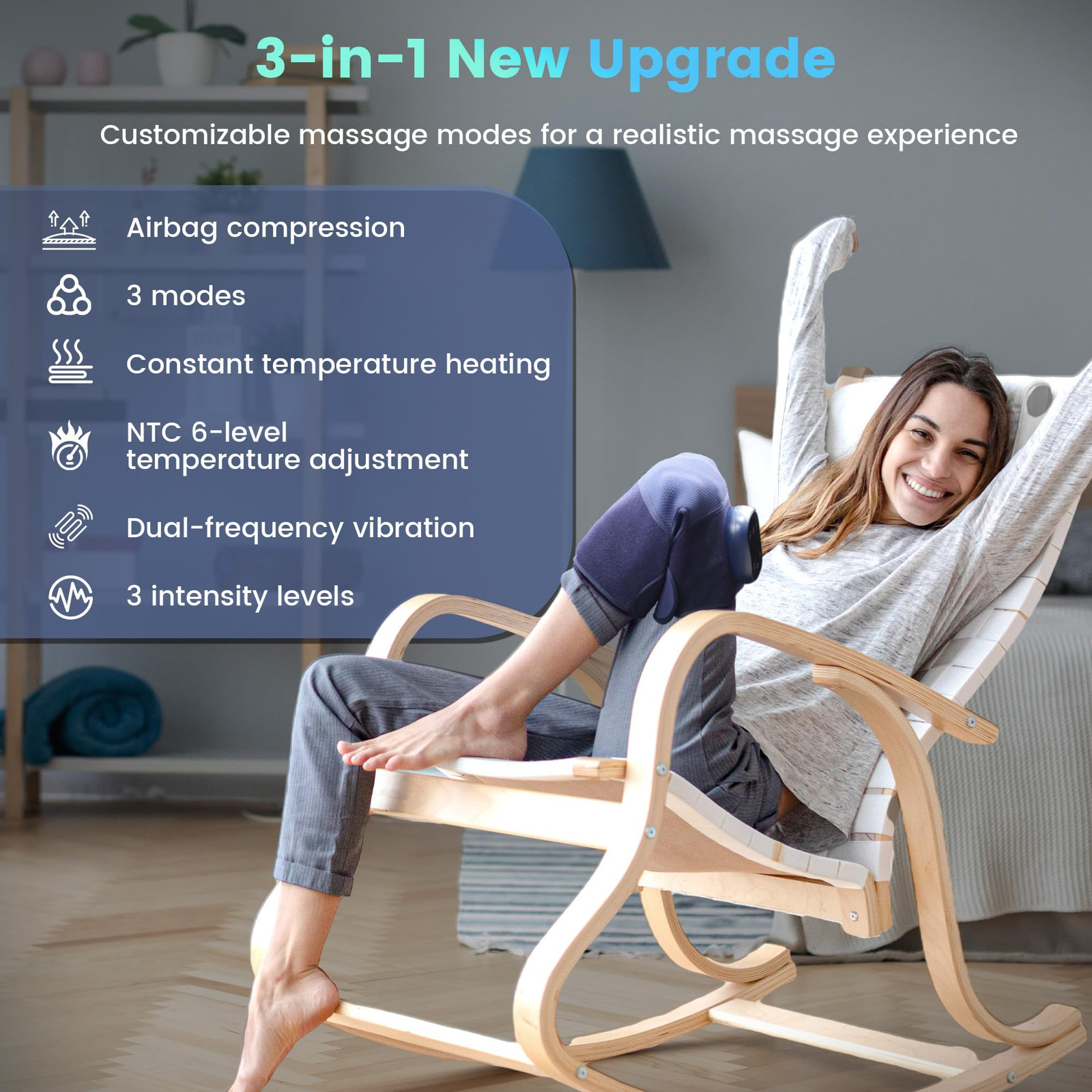 Cordless Knee Massager with Heat - 6 Levels & 3 Modes for Pain Relief