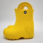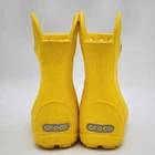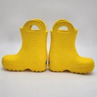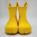 Crocs Yellow Rain Boots Boys Girls Toddler Shoes Size 6 C. READ THE LEFT BOOT HAVE SMALL HOLES SEE LAST PHOTO. Very good, clean, gently preowned condition. Not guarantee from smoke free home or pets free home.Actual Colors may vary slightly from my photographs due to flash photography and color variance in computer monitors.