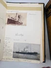 Deux grands albums manuscrits présentent une exceptionnelle documentation photographique et descriptive sur les navires français de la flotte marchande et militaire, principalement les paquebots des Messageries Maritimes et de la Compagnie Générale Transatlantique . Les pages, soigneusement rédigées à la main, comportent des photographies originales, cartes postales anciennes et notes techniques détaillées (tonnage, chantiers de construction, années de lancement et de naufrage). L’ensemble, conservé dans des reliures d’époque en cartonnage marbré , offre quelques usures d’usage , coins émoussés et feuillets parfois légèrement détachés, mais reste d’un intérêt documentaire remarquable . Véritable archive privée de passionné de marine , ces albums constituent une source iconographique et historique rare sur la navigation française de la première moitié du XXe siècle, couvrant notamment les années 1930 à 1960. Les clichés et notices évoquent les navires emblématiques : Commandant Quéré, Ville d’Alger, La Salle, Pierre Loti, Chili, Valparaiso , etc. Une pièce unique, témoignage minutieux d’un collectionneur érudit des grandes compagnies maritimes françaises. H13