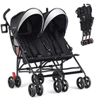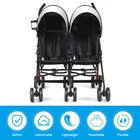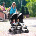 Lightweight & Travel-Friendly Design: This lightweight double stroller is perfect for families on the go. Weighing only 18 lbs, our stroller has a sturdy metal frame and features a compact fold that makes it ideal for car travel and daily use. This compact double stroller ensures convenience and ease for parents. Comfortable Seating for 2 Kids: Designed as a side-by-side double stroller, this double stroller allows children to have the same experience and enjoy the same view. Without the front bar restriction, this twin umbrella stroller maximizes your investment by adapting to the size and weight of your children as they grow. Each seat supports up to 33 pounds (66 pounds total), providing a comfortable ride for your little ones for years to come. Adjustable Canopies for Protection: The baby double umbrella stroller features 2 large, adjustable canopies with pop up sun visor that provide ample protection from direct sunlight, safeguarding your little one's delicate skin. With peek-a-boo windows, you can easily monitor your kids while on the go, ensuring they’re always within your sight. Reflective strips make you safer when traveling at night. Large Storage Space & Cup Holder: This foldable double stroller for travel offers two spacious netted storage pockets behind each seat, giving you plenty of room to store essentials like snacks, toys, or diaper bags. this stroller for twins makes traveling easier for busy parents. The included cup holder also provides parents quick access to drinks. Smooth Ride & Enhanced Safety: Equipped with shock absorbing, 360-degree swivel front wheels and foot-activated rear brake system, this double travel stroller offers a smooth ride and easy maneuverability. The 5-point safety harness ensures your babies are secure, making it an optimal choice as a twin baby stroller for growing families.