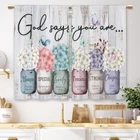 100% Polyester 【Farmhouse Design�?This mason jar flower cafe curtains rustic design in colorful color matched, add elegance to window treatments and overall appearance of the room. 【Ready Made�?Package includes 2 panels curtains, each panel measuring 26" width x 36" length. Each panel has 2.4 inch high pole pocket, which works well with tension rods or normal rods, easy to install and slide. It is recommended to use a rod with a diameter of 1.2 inch or less. 【Light Filtering�?The small curtains have just the right thickness to let in some light and also provide privacy. They will block a sun reflection, but not all of the light. You can cover the lower portion of your windows to provide privacy or used alone on shorter length windows, a great highlights to the kitchen. 【Easy Care�?Please machine wash separately with cold water, using mild detergent. Tumble dry low and no bleach. Simple iron is suggested before use. 【Nice Service�?Decorate your home, high quality. Nice after-sale service. Your 100% satisfaction is our first priority. Just contact customer support if you would like to return our products for any reason.