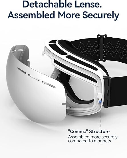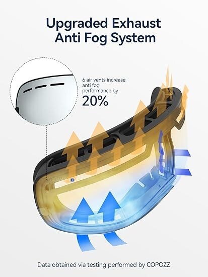 COPOZZ Ski Goggles, G1 OTG Snowboard Snow Goggles for Men Women Youth, Interchangeable Double Layer Anti Fog UV Protection Performance Double-Layer Lens - Cool full real Revo mirror coating reflective lens imported from Italy with long-lasting anti-fogging treatment and100% UV protection that can protect your eyes from strong lights; Large spherical lens with frameless design provides a truly unobstructed & clear view on the slope when skiing and snowboarding OTG Design & Helmet Compatible - The ski goggles that fit over glasses ensure an ultimate performance and comfort when skiing/ skating/ snowboarding. Extra long woven non-slip strap with great elastic for any ski helmet compatibility and keep the Snowboard goggles in place. With adjustable buckle on the strap, the goggles are suitable for both ADULTS and YOUTH. Comfortable & Warm - Multiple layer high density breathable foam keep your face warm and anti-wind. The 2 way ventilation system provides smooth air-flow which brings fresh air and exhaust moisture quickly and effectively. Interchangeable Lens - There are many different replacement lenses available for G1 Ski Goggles. Perfect ski goggles to make your own combination for different light conditions. If you want to ski from day to night, it's better that you got two lenses to switch, please search COPOZZ G1 Replacement lens. What You Get: 1 x COPOZZ OTG Ski Goggles, 1 x Carrying Pouch, 1 x User's Manual.