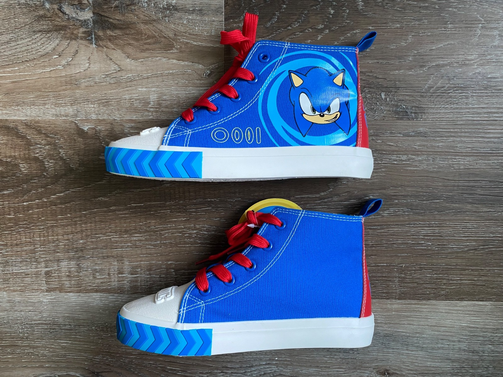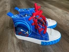 GROUND UP~New~Sonic The Hedgehog Boys High Top Sneakers Shoes~Size 3~NEW IN BOX *Style: ECSO3022KO *Size: Boy's size 3 *Color: Blue, light blue, white, red, yellow, black, gray, & beige *Closure: Lace up *Condition: excellent, new condition. Please review attached pictures of the item. DOES have the original box. *We have a smoke-free home.