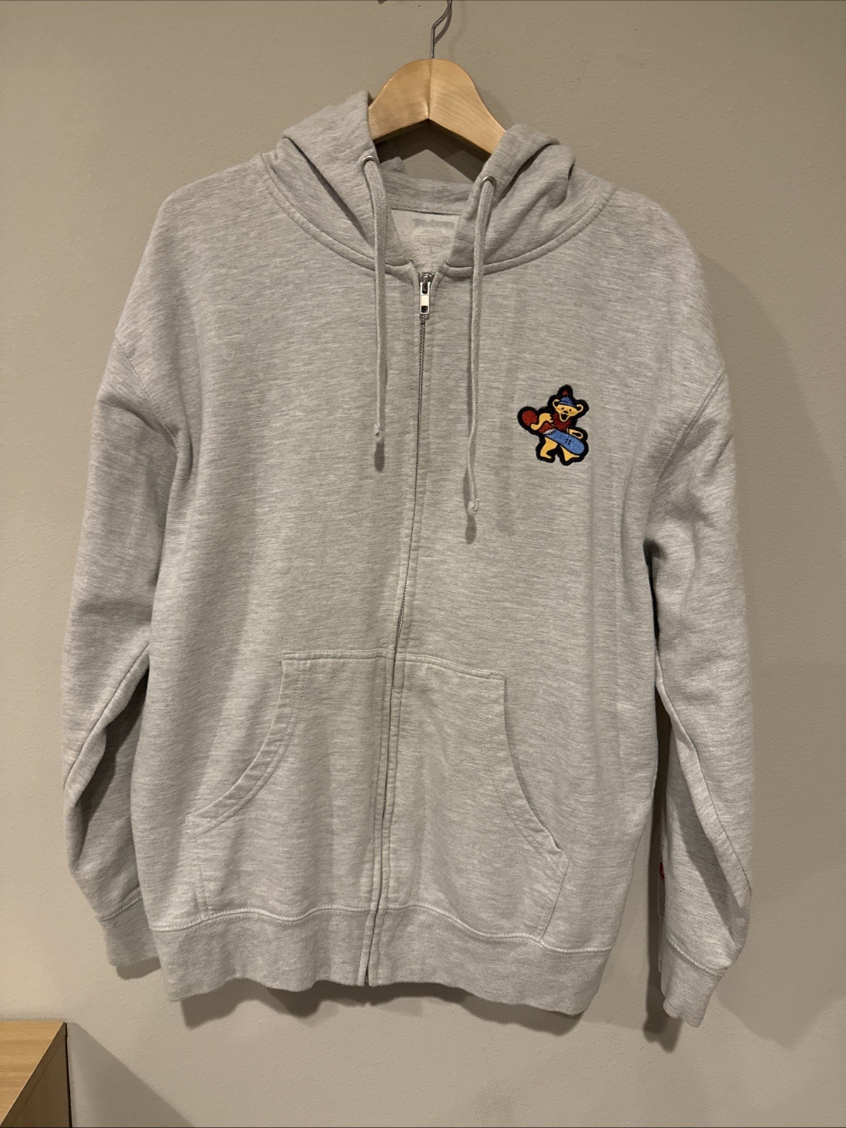Hello, this is a Grand Teton x The Grateful Dead zip up hoodie in a size large. It’s in great condition, it had one small mark that’s hardly noticeable. Pit 23” length 25” sleeve 23.5” feel free to offer or ask me any questions!