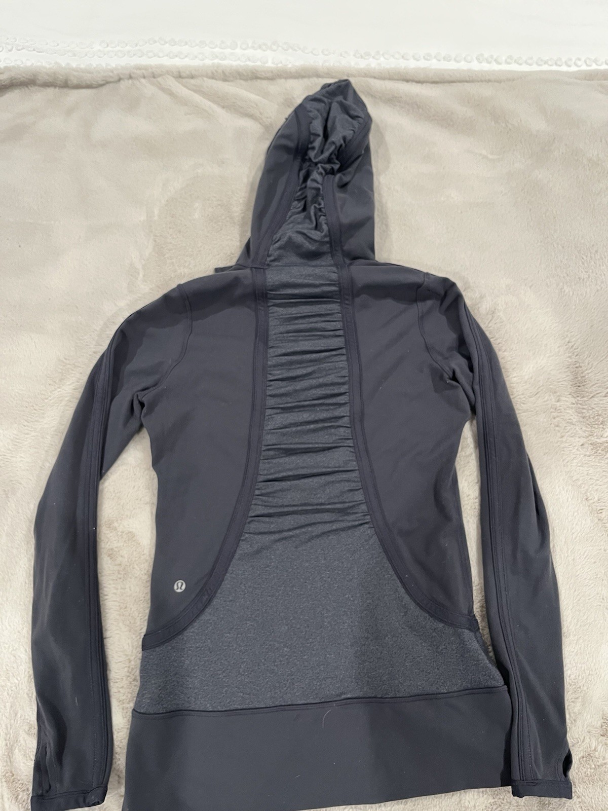 Experience comfort and style with this sleek Lululemon hooded sweatshirt in a versatile gray. Designed for women who appreciate activewear that doubles for casual flair, this size 6 full-zip jacket is a must-have. Its long sleeves and blended fabric provide a cozy feel, perfect for brisk jogs or laid-back days. The sweatshirt features a practical hood, ideal for those on-the-go moments when you need an extra layer. Machine washable for easy care, it's a piece that keeps up with your active lifestyle while maintaining its shape and color. Whether you're hitting the gym or running errands, this Lululemon hoodie will keep you looking sharp and feeling great.
