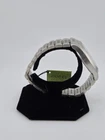 Gucci G-Timeless Men's Black Dial Stainless Steel Watch - YA126201 ($825 MSRP) New with Original Box and Tags! This watch is a Shelf Pull from one of the Major Department Stores. May find few micro scratches on the watch case/band, visible under a direct and strong light. The Gucci G-Timeless Men's Black Dial Stainless Steel Watch - YA126201 combines sleek design with practical functionality, making it a versatile accessory for everyday wear. Encased in durable stainless steel, the watch features a matching link bracelet and fixed stainless steel bezel, adding to its contemporary appeal. Its striking black dial is accented with luminous hands and stick hour markers, ensuring visibility even in low-light conditions. Arabic numerals mark the 3, 6, 9, and 12 o'clock positions, adding a touch of sophistication to the overall design. Minute markers encircle the outer rim for enhanced timekeeping precision. With a convenient date display positioned at the 4 o'clock position, this watch offers practical functionality for keeping track of the date alongside the time. Powered by a reliable quartz movement, the watch ensures accurate timekeeping with minimal maintenance required. Protected by scratch-resistant synthetic sapphire crystal, the dial remains shielded from everyday wear and tear, maintaining its pristine appearance for years to come. With a case diameter of 44.5 mm and a thickness of 9.3 mm, the watch strikes the perfect balance between style and comfort. The 23 mm band width complements the case size, while the hidden deployment clasp provides a secure and seamless closure. Water-resistant up to 30 meters (100 feet), this watch is suitable for everyday wear and can withstand splashes and brief immersion in water, but it is not suitable for swimming or showering. With its timeless design and reliable performance, the Gucci G-Timeless Men's Black Dial Stainless Steel Watch - YA126201 is an ideal choice for the modern man looking to make a statement with his accessories. Features Stainless steel case with a stainless steel link bracelet. Fixed stainless steel bezel. Black dial with luminous hands and stick hour markers. Arabic numerals mark the 3, 6, 9 and 12 o'clock positions. Minute markers around the outer rim. Dial Type: analog. Luminescent hands and markers. Date displays at the 4 o'clock position. Quartz movement. Scratch resistant synthetic sapphire crystal. Solid case back. Case diameter: 44.5 mm. Case thickness: 9.3 mm. Band width: 23 mm. Hidden deployment clasp. Water resistant at 30 meters/ 100 feet. Functions: hours, minutes, seconds, date Fast and Free Shipping You're already purchasing the item. Why pay additional for shipping, especially slow shipping? We get your order shipped out within 1-business day and delivered to your doorstep as quickly as possible. Competitive Pricing With our dynamic pricing model, our prices are always competitive. Our prices are some of the lowest that you will find on the internet. Rest assured that you're getting a good deal when purchasing with us. 30-day Money Back Guarantee We are committed to making sure that you leave this transaction satisfied. If you're unhappy with the product for any reason, you may return it back for your money-back or a replacement within 30 days. No questions asked!