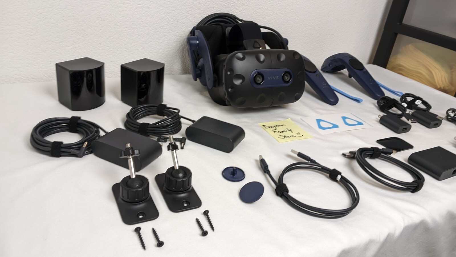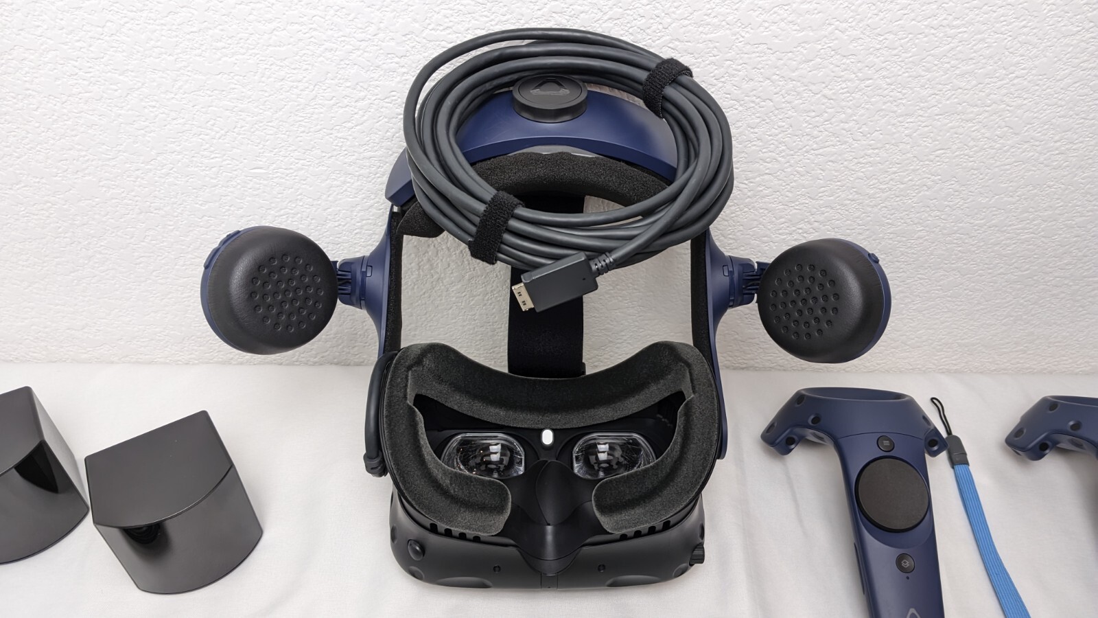In Excellent A+ Condition Fully Cleaned and Sanitized Non-Smoking Home Tested and Fully Operational May Have Light Scuffs from Storage (if any) Single Face Cushion Style May Vary (Between OEM Foam / Non-OEM Leather) Either Genuine HTC Cables Provided or Brand New Cables of Same Type Visualize in 5K clarity-Bring out the finer details with combined 4896 x 2448 resolution. 5K resolution may be subject to processing compatibility See more of your environment-A wide 120 Degree field of view (FOV) expands the VR viewing experience. The increased angle better aligns with the human eyes, letting you see more naturally Experience seamless visuals-Increase your visual comfort in graphics-intensive games and apps with a 120Hz refresh rate Enjoy VR with hours on end comfort-Industry-defining balanced construction and adjustability provide a comfortable fit for VR sessions of any length and purpose. The headset fits a wide range of head sizes and vision types, even glasses Find your sweet spot-Minimize eye fatigue with the IPD adjustment dial. Interpupillary distance (IPD)-the distance measured in mm between the centers of eye pupils Product Description VIVE Pro 2 is designed to elevate your virtual experiences with high visual fidelity, balanced ergonomics, sub-millimeter tracking accuracy, and cutting-edge accessories. New dual LCD screens, 5K resolution, 120 Degree field of view, and 120Hz refresh rate help deliver category-leading immersion ideal for AAA PC-VR gaming and graphics-intensive applications. Upgrade to VIVE Pro 2, now. Includes VIVE Pro 2 Headset, 2 Base Station 2.0 and 2 Controller 2.0. From the manufacturer Previous page Next page Previous page Next page Previous page