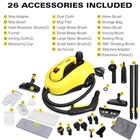 【HIGH-PRESSURE STEAM CLEANING】One of the primary advantages of steam cleaning is its contribution to a healthier living environment. Traditional cleaning products often can release residues. In contrast, steam cleaning uses only water heated to high temperatures to break down and remove tough dirt, grime, and grease. 【EXTRA LARGE CAPACITY TANK】The generous 52oz water tank capacity allows you to clean for longer durations without interruptions. With a quick 8-minute heat-up time, it provides an extended 50 minutes of uninterrupted steam. You can cover more ground and complete extensive cleaning tasks without the need to stop and refill the tank frequently. 【SECURE OPERATION】Operating our steam cleaner is effortless, ensuring a worry-free cleaning experience. Simply grip the handle and pull the trigger to release a controlled burst of steam for effective cleaning. The handle's base features a steam engine lock, preventing accidental steam release and offering protection. 【VERSATILE APPLICATION】Our steam cleaner is a versatile solution that adapts to every facet of your daily life. You can trust it to tackle tasks such as cleaning floors, tiles, grout, sofas, clothes, toilets, bathrooms, kitchen sinks, appliances, range hoods, windows, grills, upholstery, cars, etc. 【EXPANDED CLEANING REACH】Benefit from extended reach with an extra-long 197-inch power cord and a 57-inch steam hose. Allowing you to effortlessly access and clean even the most challenging, out-of-the-way areas. 【26 VERSATILE ACCESSORIES】Accessories include: extension Tube x 2; floor Brush x 1; ironing Brush x 1; glass Brush x 1; storage bag x 1; big nylon brush x 2; small nylon brush x 2; high pressure nozzle x 1; accessory adapter x 1; mop adapter x 1; rotating brush x 1; wave brush x 1; big copper brush x 1; small copper brush x 1; mop pad x 1; tack cloth x 1; measuring cup x 1; funnel x 1; ironing towel x 2; heat-resistant gloves x 2; sealing ring x 1. 【NOTE】After the machine is stopped or has had a period of cooling down, the steam condenses back into water within the hose and extension tube. Each time it is started, the nozzle will initially spray out the condensed water that had accumulated in the hose since the last use. This is normal and nothing to worry about.