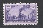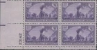 USPS stamp issued May 10th 1944 marking the 75th anniversary of America's first transcontinental railroad called the Pacific Railroad. The stunning violet stamp illustrates the opening on May 10, 1869 with CPPRR President Leland Stanford ceremonially tapping the gold "Golden Spike" with a silver hammer at Promontory Summit, Utah. This is a premium block of 4 mint stamps with the USPS issue number of authenticity and comes with an attractive display mount.