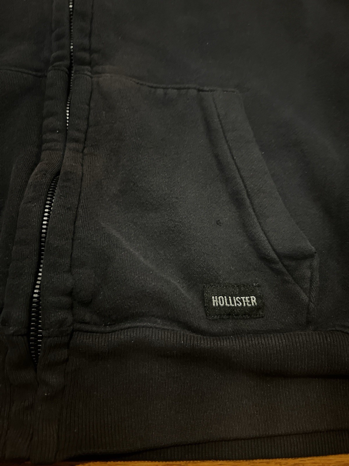 Hollister Hoodie Mens Medium Full Zip Up Sweatshirt Pockets Black