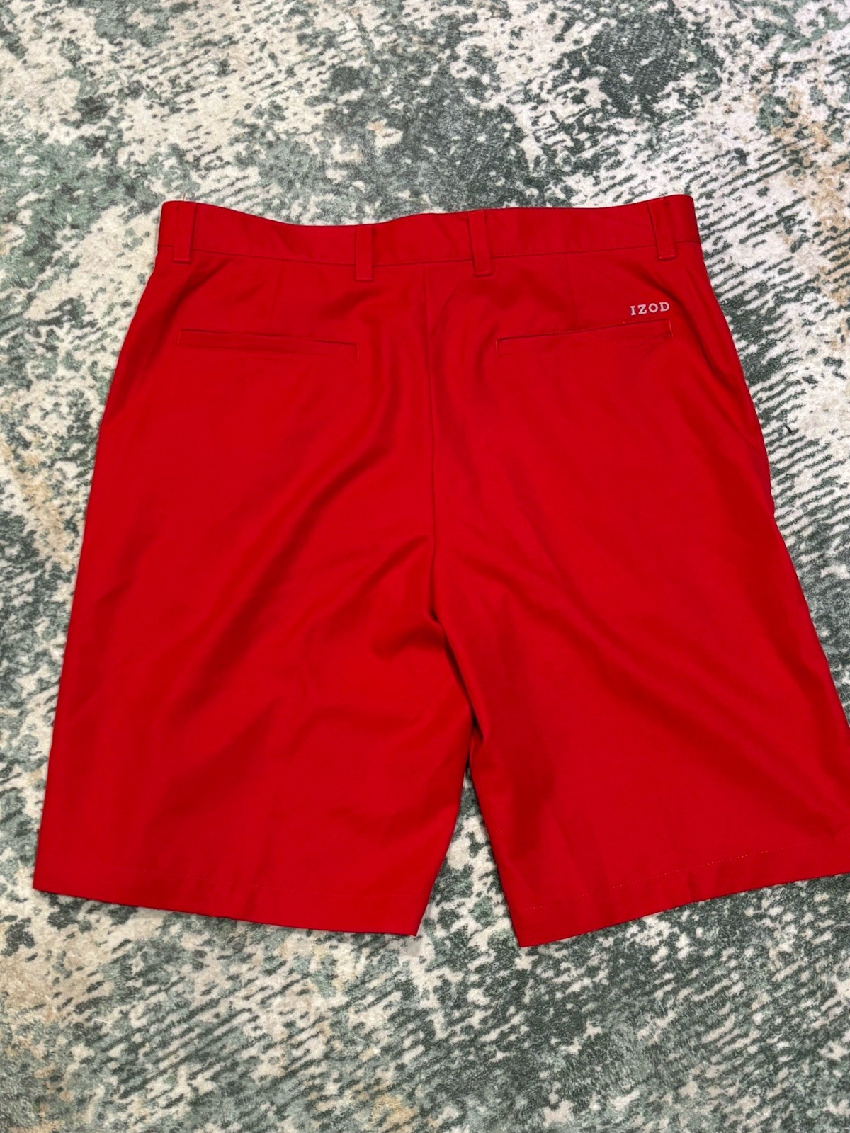 The IZOD Golf Shorts are a stylish and versatile option for casual occasions. Made from polyester with a light fabric wash, these athletic fit shorts in a classic red color feature a 10-inch inseam and stretch for added comfort and flexibility. Perfect for outdoor activities, these preppy and light stretch shorts are a great addition to any man's wardrobe.