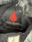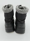 Boots are in good condition, no rips or tears. The labels in the boot are hard to read. They do show some wear on the cleats of the boots and fabric around the boot opening, but still have a lot of life left in them. The gray fabric at the top of the boot is a little "pilly". Laces have a cinch on them, so no need to tie them. Keen Warm 200 gram insulation. Wrap up your young one's feet in the dependable warmth and protection of KEEN's Warm Basin Boots. Designed with a versatile 200 gram lining, these boots are suitable for a range of seasons, ensuring comfort whether hiking in the spring or embarking on a winter adventure. The sleek black color and classic high-top lace-up closure make these boots a timeless addition to any active boy's wardrobe.Crafted with a durable leather textile upper and featuring a cap toe design, these boots are built for enduring style and waterproof performance. Ideal for both hiking and hunting, the robust construction paired with the thoughtful features such as the solid pattern and standard shoe width cater to practicality without compromising on style. The KEEN Warm Basin Boots are a solid choice for youth sizes 13.5 US and 13 UK ready to take on any outdoor challenge.