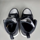 Step into iconic style with these toddler Air Jordan 1 Mid sneakers. The dynamic black and silver colorway, accented with classic Jordan branding, offers a premium look that's perfect for little trendsetters. Shiny patent leather overlays catch the light, while the high-top silhouette provides ankle support for active play. Secure laces and convenient pull tabs make these shoes easy to get on and off for busy parents. Ideal for everyday adventures, playtime at the park, or casual outings with family. Style: Sneaker Type: Athletic AU Shoe Size: 7 UK Shoe Size: 6.5 Product Line: Jordan Model: Air Jordan 1 Performance/Activity: Basketball, Running & Jogging Closure: Lace Up Upper Material: Patent Leather EU Shoe Size: 22 Insole Material: Fabric Features: Cushioned, Padded Heel Height: Flat (Under 1 in) Keywords: toddler sneakers, high top shoes, basketball shoes, iconic design, streetwear, athletic footwear, fashion sneakers, playtime shoes, casual wear, jumpman logo, shiny leather, pull tabs