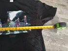 This Killer Klowns From Outer Space Abbey Road Tee Shirt in black, size large, features a graphic print design with a crew neckline and short sleeves. Made of cotton material, this vintage shirt by Delta brand has a regular fit and is easy to care for. The shirt is inspired by the movie theme of space and clowns, making it a unique addition to any man's wardrobe. Made in Honduras, this t-shirt also features a pre-shrunk quality for added durability. Very good used condition with no holes rips or stains. General wear may be evident such as wrinkling, lint or material wear. Please review all photos for exact condition measurements and details. Exact item pictured ships as is.