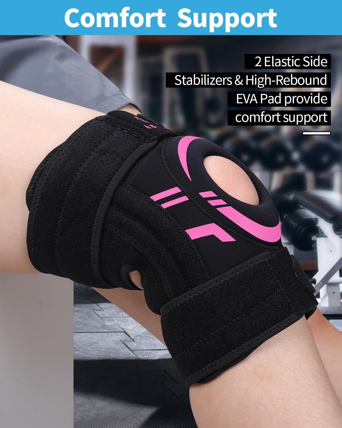 1 Pack Knee Brace for Men and Women Designed with Real User Need in Mind: The DSHX-06 Knee Brace is a solution built on what real users need most: all-day comfort, no slipping, durable performance, and targeted relief for knee pain. Premium Grade Neoprene Knee Support: Heat therapeutic neoprene helps warm muscles and joints making it the best knee support for arthritis.The adjustable compression system ensures blood flow safety, giving support to the knee complex.Reliable support reduces stress and strain, providing stability to weak and injured knees. Secure Fit That Won’t Slip: Unlike many braces that slide down during movement, our 4-way adjustable strap system and dual side stabilizers ensure a locked-in fit—whether you're jogging, squatting, or on your feet all day. Open-Patella Design with Optimized Sizing for Enhanced Comfort: An anatomically contoured patella gel pads surrounds the kneecap without causing pressure.This optimized design helps relieve discomfort from conditions like arthritis, meniscus tears, and ligament injuries—while offering targeted support without irritation. Versatile Use for Various Activities: Whether you're recovering from an injury or seeking preventive support during sports, our Knee Brace DSHX-06 is suitable for a range of activities, offering the necessary support without restricting movement. Backed by ’s Exceptional Customer Support - At , we stand firmly behind our products with dedicated after-sales service and an unwavering commitment to your satisfaction. If you are not happy, we’re here 24/7 to make it right—your recovery and comfort are our top priority.