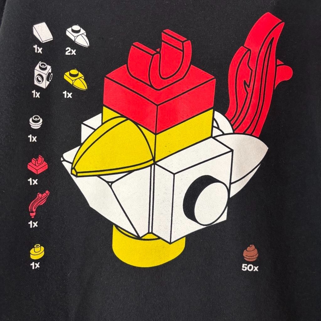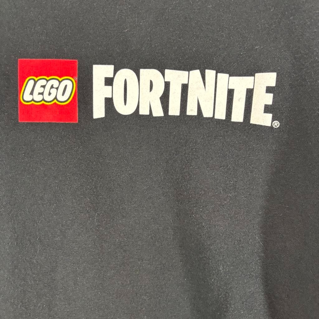 Awesome black hoodie from the LEGO x Fortnite collaboration! Front features bold LEGO and Fortnite logos. Back shows a creative LEGO-style build with part counts, fire and even a poop brick (classic LEGO humor). Size: Medium (tag is missing, please see measurements below) Condition: Gently worn – no stains or flaws Material: 70% Cotton / 30% polyester Fit: Unisex, relaxed fit Rare promo-style piece – hard to find Great for fans of Fortnite, LEGO collectors or anyone into playful streetwear. Mearurements (flat) Pit to Pit 21 inches Length 27 inches Sleeve length 23 inches Waist width unstretched 19.5 inches