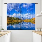 Landscape Kitchen Curtains Nature Theme Autumn Mountain Cloud Forest Lake Scene