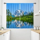 Landscape Kitchen Curtains Nature Theme Green Forest Tree Lake Snow Mountain Sc